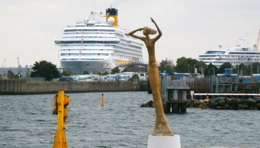 Die neue Figur „Esperanze“ auf der Mittelmole, im Hintergrund die Costa Fortuna – Foto: h|b