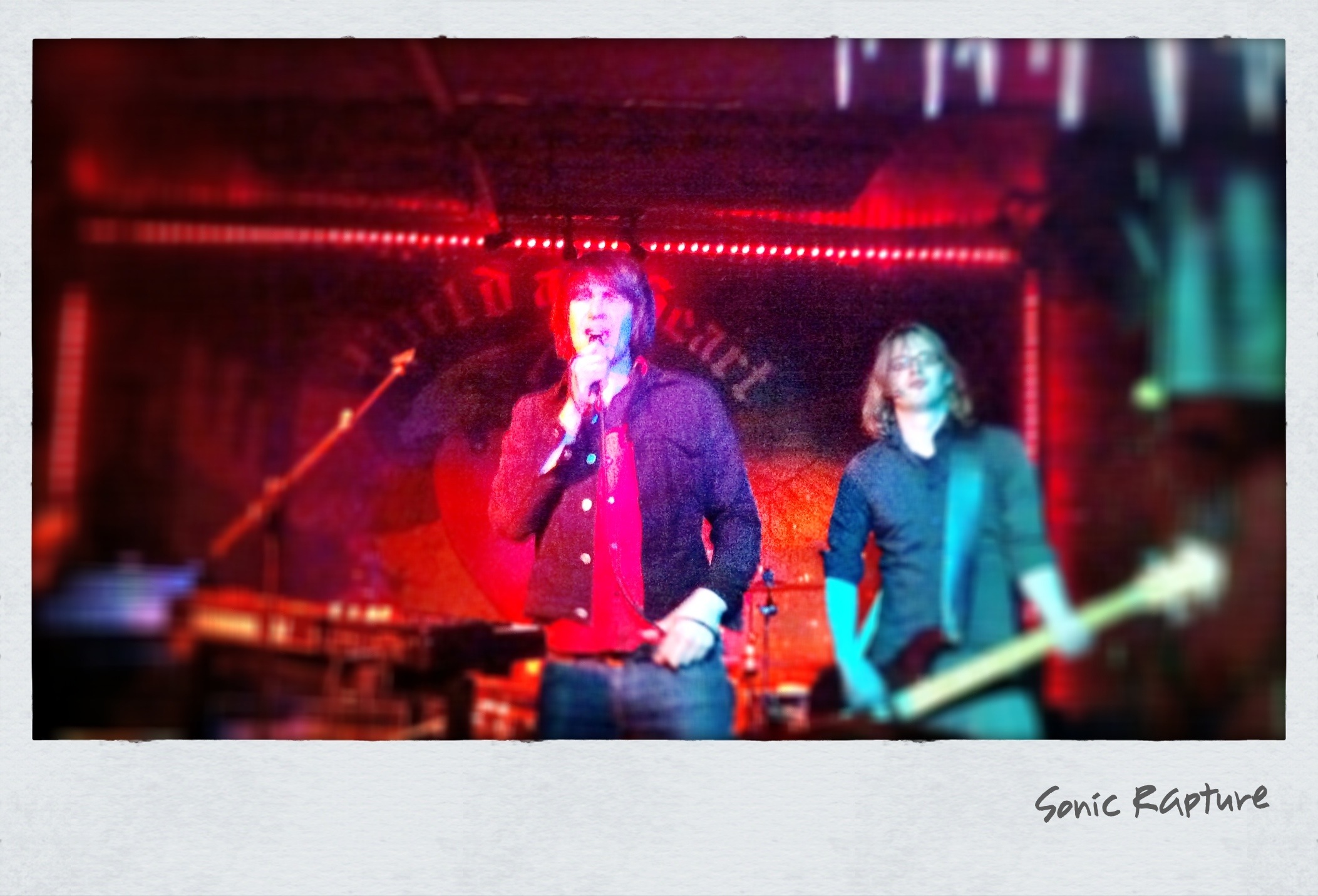 Um das Wild at Heart in Kreuzberg betreten zu dürfen, muss man am bärtigen Torwächter vorbei. Der sitzt schweigend hinter einer Glasscheibe in einem kleinen Kabuff und zuckt auf die fragende Ansage „Drei Personen?“ nicht mit der Wimper, geschweige denn, das er einen Preis nennt. Der steht schließlich auf einem kleinen Zettel irgendwo neben ihm. Nach dem durchreichen des Obolus bekommt man schweigend einen Stempel auf die Hand. Hatte ich lange nicht mehr. Kommunikation scheint auch out zu sein. Nach dem Eintritt in das Lokal weiß ich aber auch gleich wieso. Nach dem Stempel knallt mir die Musik dermaßen auf die Ohren, dass es nur so kracht. Eine Mischung zwischen Metal und Hardrock, und als Beilage… Rauch! Es darf geraucht werden und es wird geraucht. Wir, Sara, Anna und ich, zwängen uns durch den engen Schlauch Richtung Theke und ich begrüße kurz den Leadsänger der Band Sonic Rapture, wegen der ich schließlich hier bin. Eine Begrüßung ist hier gleichbedeutend mit „sich anschreien“. Geht nicht anders. Richard, der Frontmann der Band, erwähnt kurz dass es später wird, da noch eine Vorband spiele. Okay, neun Uhr ist für Berlin eh sehr früh.