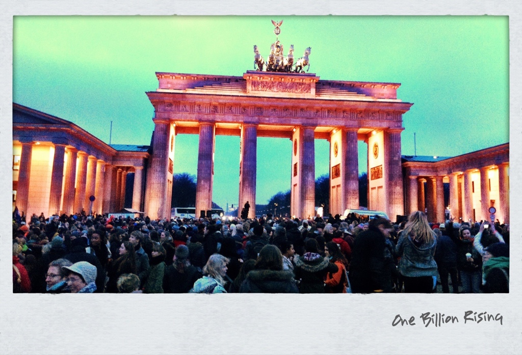 Neben Valentinstag war heute auch Weltaktionstag gegen Frauengewalt. Unter dem Motto „One Billion Rising“ kamen weltweit Menschen zusammen, um zu einer bestimmten Choreographie zu tanzen, und um ein Zeichen zu setzen. In Berlin war der Treffpunkt auf dem Pariser Platz am Brandenburger Tor. Mehrere hundert Frauen und Männer trafen sich, um um halb sechs die Aktion erfolgreich durchzuführen. Happy Valentine.