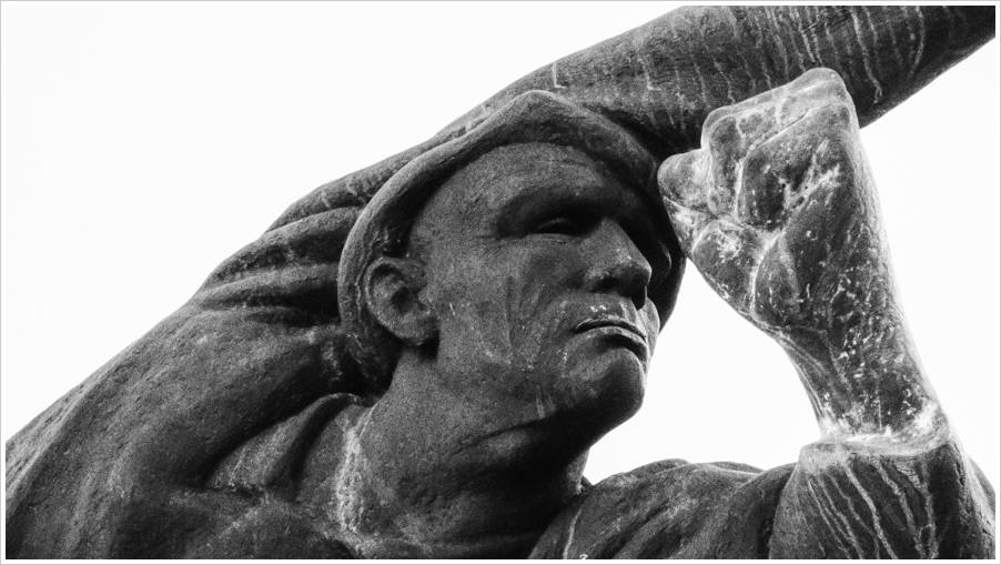 In Stein gehauen steht er da, der spanische Kämpfer, grimmiges Gesicht, das Schwert aufrecht erhoben, dem Feind entgegen. Das Denkmal erinnert an die an die mehr als 3000 im Spanischen Bürgerkrieg auf Seiten der Republik gefallenen Deutschen. Ich dachte immer es wäre etwas russisches. So kann man sich irren. Über die Greifswalder Straße geht es leicht bergauf, dann noch einen kleinen Anstieg hinter der Prenzlauer Allee, hier wird überall mächtig gebaut – Neue Wohnungen für den Prenzlauer Berg – dann biege ich links in die Schönhauser Allee mit Blick auf den Alex und das Riesenposter von „Wrinkles in the city“ des Künstlers JR.