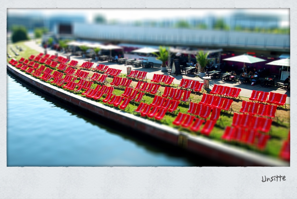 Verdutzt rieben sich die Menschen heute morgen gegen halb acht auf dem Weg zum Hauptbahnhof die Augen. Hatte die unselige Angewohnheit der Deutschen und Engländer, die Liegen am Urlaubsstrand morgens in aller Herrgottsfrühe schon mit Handtüchern zu belegen, nun auch den Capital Beach erreicht? Alle verfügbaren Liegen waren weithin sichtbar mit roten Handtüchern belegt.