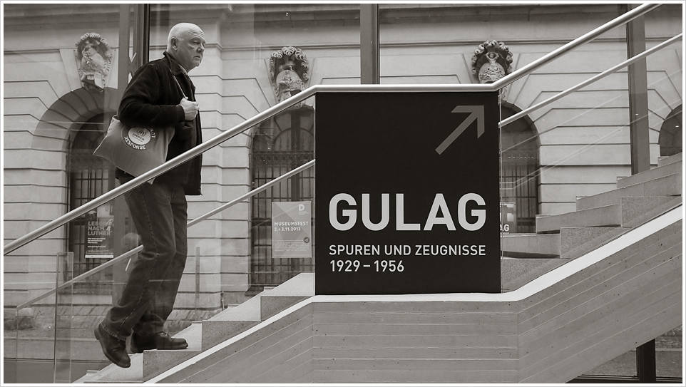 Von Leipzig führt der Weg ganz nach oben, direkt in den russischen Gulag. Eine Ausstellung die zu DDR Zeiten sicher nicht hätte stattfinden können, war der große Bruder doch unfehlbar und schließlich das große Vorbild. Wie viele totalitäre Regime und Diktaturen spielte eine gewisse Paranoia, überall von Verrätern und „Volksschädlingen“ umgeben zu sein, zu einer Ausweitung der Organe der Staatssicherheit, die schließlich ein Eigenleben bekamen und so landete man schneller im Gefängnis, und später in der Verbannung, als einem lieb war. Gründe wurden meist gar keine genannt, wie in der Hexenjagd genügte schon mal der neidische Nachbar, der sich durch Denunziation vielleicht einen Vorteil versprach. Oftmals war es einfach eine Quote die erfüllt werden musste, oder Bauwerke in Sibirien die halt irgendwie gebaut werden mussten. Menschen gab es schließlich genug.