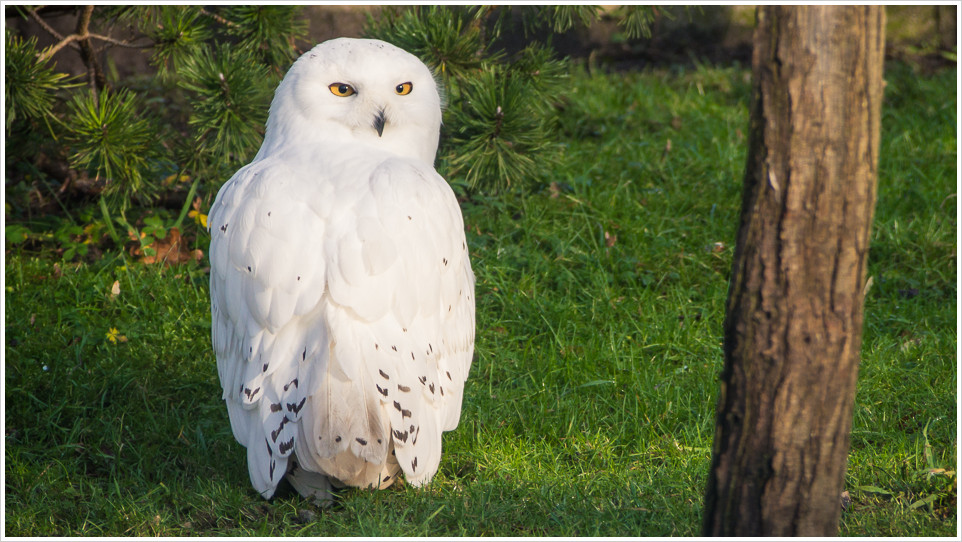 Gestern waren wir endlich mal wieder im Tierpark Berlin – die Jahreskarte muss sich ja rechnen, außerdem hat der Monsun grad mal Pause – und dabei lief mir doch dieses Prachtexemplar von Schneeeule über den Weg. Ihr eigentlicher Schutz – weißes Gefieder vor weißem Hintergrund – kommt aktuell nicht zum Tragen, mit Schnee und Winter klappt es dieses Jahr nicht so recht. Um so besser natürlich für den Fotografen. Das irritierende an diesen Eulen ist ja ihr Hals. Die Eule auf dem Foto steht definitiv mit dem Rücken zu mir, also Füße weg vom Betrachter, und kann mich trotzdem anschauen. Mal rechts rum, mal links rum, aber immer 180 Grad. Noch irritierender wäre es wohl, wenn sich der Kopf komplett drehen würde. Aber irgendwo gibt es dafür sicher physikalische Grenzen. Interessanter Fakt: Die Schneeeule ist übrigens das Maskottchen der Fußball-Weltmeisterschaft der Frauen 2015 in Kanada.