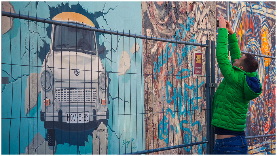 Naja, mit Streetart und Graffiti, die Jugendliche nutzen um sich auszudrücken, hat das an der Mauer ja nur noch wenig zu tun. Das ist Erhalt von Zeitgeschichte. Kann man auch wollen oder machen, schwierig ist es in jedem Fall. Denn jede Mauer kann man für ein Statement nutzen, ob häßlich grau, Vorort-Weiß oder Hauptstadt-Bunt.