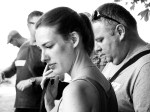In Zingst hat er auch nichts vorbereitet, obwohl natürlich bei den Teilnehmern eine gewisse Erwartungshaltung vorhanden ist. Aber nee, alles easy. Jeder pappt sich seinen Namen auf die Brust und schon schlappen wir über den Zingster Deich und nerven die Radfahrer. Eingeladen hatte Paddy 100 Leute, tatsächlich gekommen sind dann rund 50. Vielleicht können die Leute mit kostenlosen Angeboten nichts anfangen und geben lieber Geld für Diaschauen aus. Ich fand die Idee gut, bin auch schon mal mit Paddy durch Berlin gezogen und fand das lustig, wenn Fotografen, Fotografen fotografieren. Unter anderem.