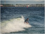 Erstaunlicherweise trieb der Wind mit Stärken 7-8 aber auch das Wasser so in den Warnowkanal, dass sich auf der Seite mit dem grünen Leuchtturm, lange Wellen bildeten, die den dort versammelten Surfern oft Gelegenheit boten, für rund 50-100 mit der Welle zu surfen, bis sie sich an den Ufersteinen brach. So bot sich den staunenden Spaziergängern ein ungewohntes Bild von Surfern, wo sonst nur Fähren, Möwen und Schwäne zu sehen sind.