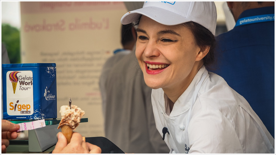 Manches Eis war sehr lecker, anderes eher speziell. Das einzige Eis, was ich definitiv nicht zu Ende essen konnte, war „Xochiquetzal“ aus Laufen. Der enthaltene Ingwer verlieh dem Eis eine Schärfe, die selbst nach mehreren Löffeln nicht erträglicher wurde. Muss man vermutlich mögen. Sehr lecker dagegen war die „Limone Stravagante“ aus Saarburg, ein frisches, nicht zu süßes, Zitroneneis und „Annurca – Die Königin der Äpfel“, ein Apfel Sorbet Eis mit Bratapfel marmoriert, fast ein bißchen weihnachtlich.