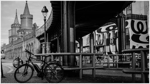 Die weltbekannten Graffiti von „Blu“ aus den Jahren 2007/2008 wurden im Dezember 2014 mit Einverständnis des Künstlers durch den Berliner Kulturwissenschaftler Lutz Henke mit schwarzer Farbe übermalt und sollten ein „...ein Signal gegen die misslungene Stadtentwicklung insgesamt und den Berliner Umgang mit der Kunst“ setzen. Hier machen wir es uns kurz am Frühstückstisch der Subkultur gemütlich und schauen auf die andere Seite der Oberbaumbrücke, bevor wir zum dritten Teil der Reise in die Pedale treten.