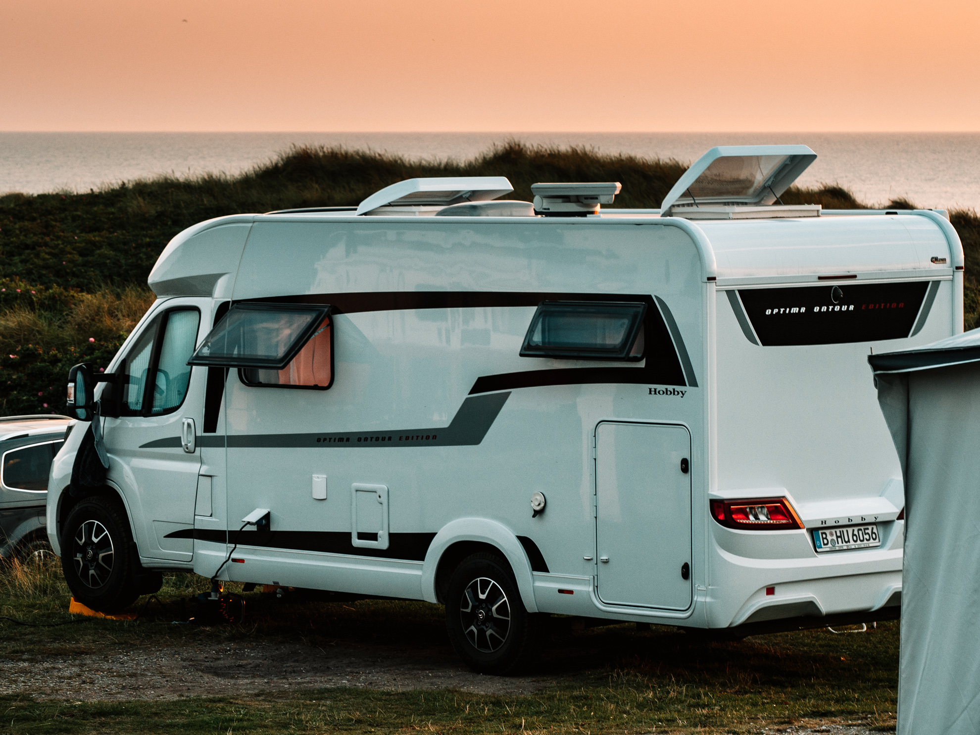 Inzwischen haben wir das Wohnmobil auf unserem Aussichtsplätzchen auf dem Campingplatz in Nørre Vorupør platziert, waren schon ne Runde in der ruppigen Nordsee baden und genießen nun den fantastischen Ausblick auf den extra für uns inszenierten Sonnenuntergang. Um es mit den Dänen zu sagen, es ist schon sehr „hyggelig“ hier. Wenn wir nicht nach Norwegen wollten, könnte man es hier sicher noch länger aushalten. Morgen können wir den Tag dann relaxed starten, bis zur Fähre ist viel Zeit. Vielleicht schauen wir noch mal in Skagen vorbei und stellen uns wieder mal mit beiden Beinen in Nord- und Ostsee gleichzeitig. Hatten wir ja noch nie 🙂