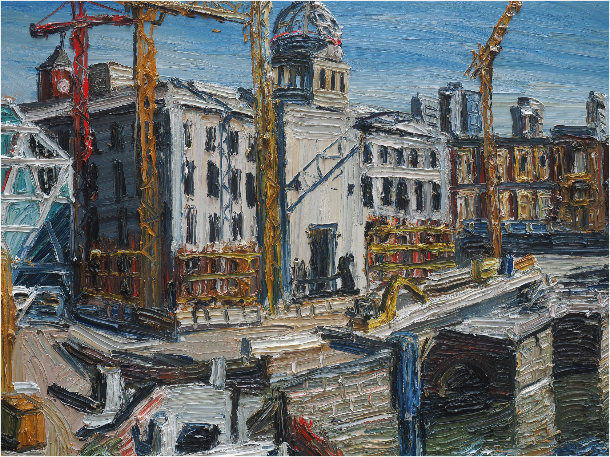 Wir schreiben das Jahr 2016 und der Bau des Humboldt Forum (formerly known as „Stadtschloss“) schreitet sichtbar voran. Der Rahmen steht, also Zeit für einen „Tag der offenen Tür“, dem noch einige folgen werden. Die Wege durch den Rohbau sind vorgegeben, es gibt Essen und Trinken und vom Dach aus, kann man die künftige Kuppel betrachten.