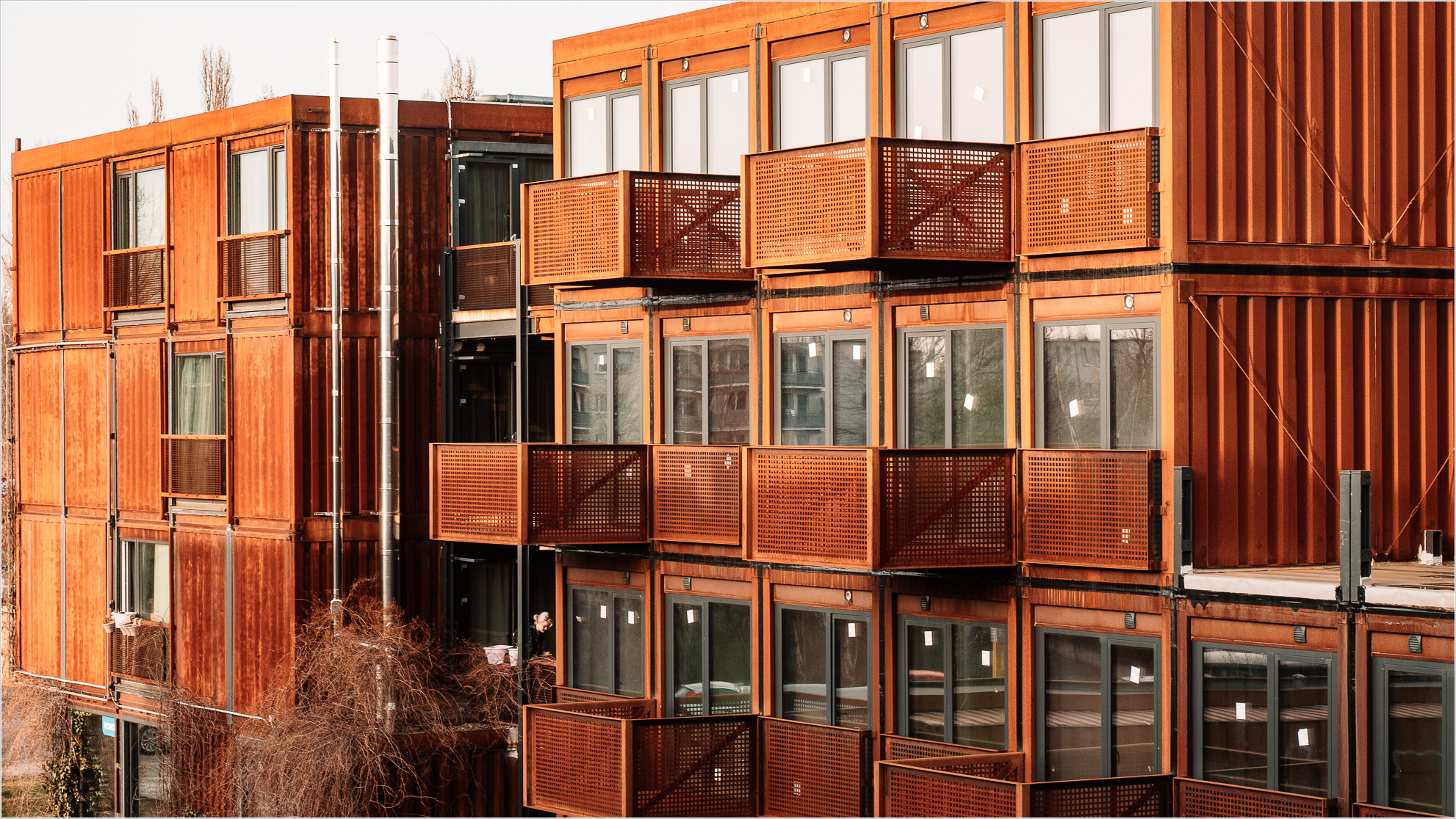 Es gab eine Party zum Tage des „Offenen Containers“ und die Resonanz war sehr gut. Die Website zum Containerdorf zeigt die Wohnanlage allerdings etwas „transparenter“, in der Realität hat es etwas weniger Fensterfronten, dafür mehr Container im rostigen Patina. Auf der Seite kann man die Geschichte von Frankie, Johnny und Nelly – so heißen die 3 Gebäuderiegel – noch mal nachlesen.