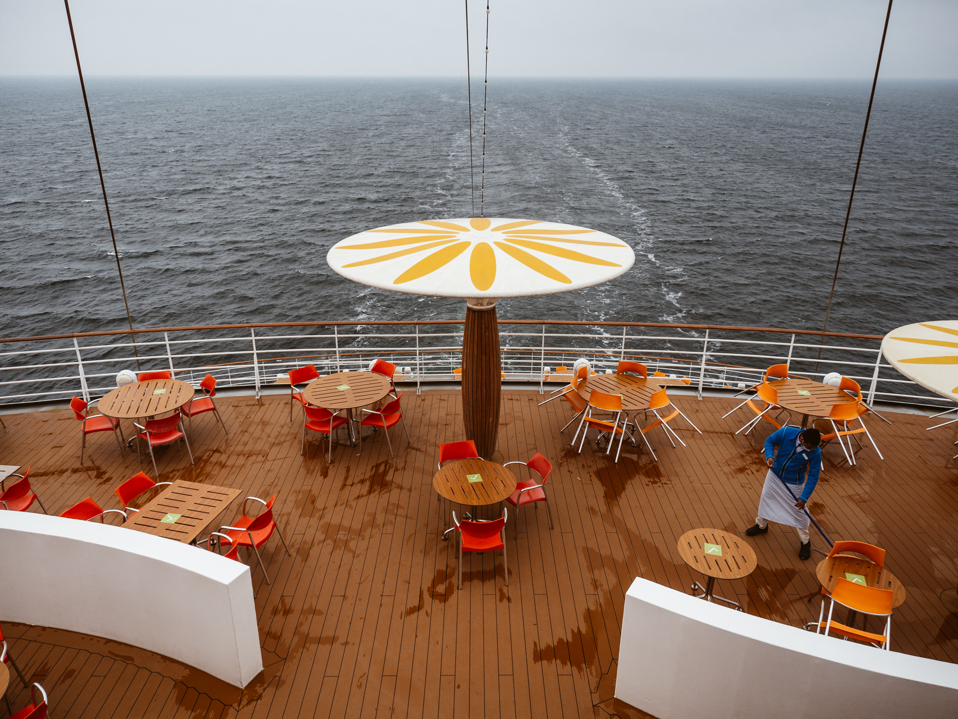 Der letzte Seetag bietet uns Erholung von der Sonne, die uns bis jetzt durchgängig begleitet hat und Nase und Kopf schon hat rot werden lassen. Bis zum Ziel nach Warnemünde bleibt es nun wolkig und später auch regnerisch. Für die letzte Etappe noch Gelegenheit sich ein wenig mit dem Schiff zu beschäftigen.