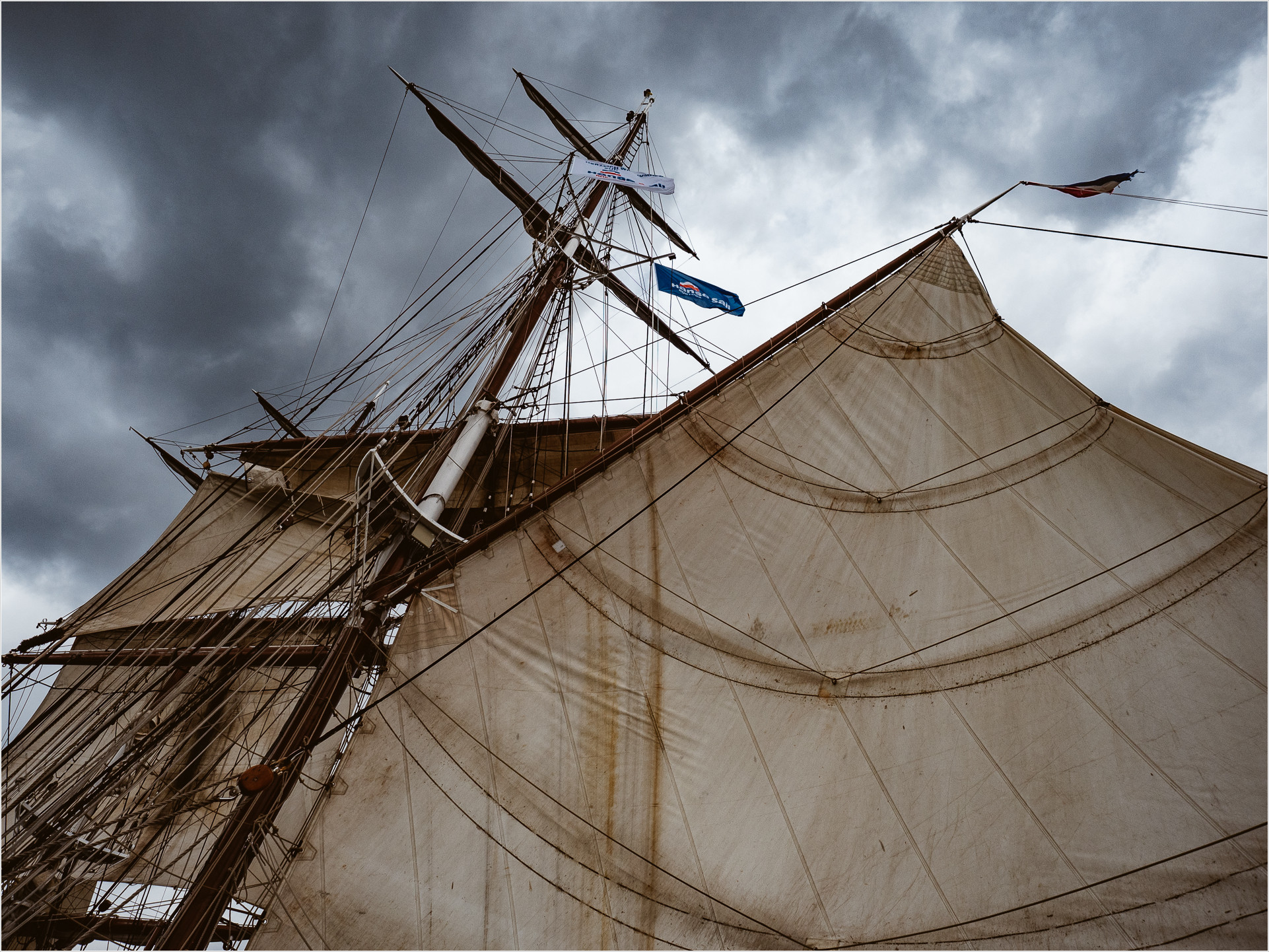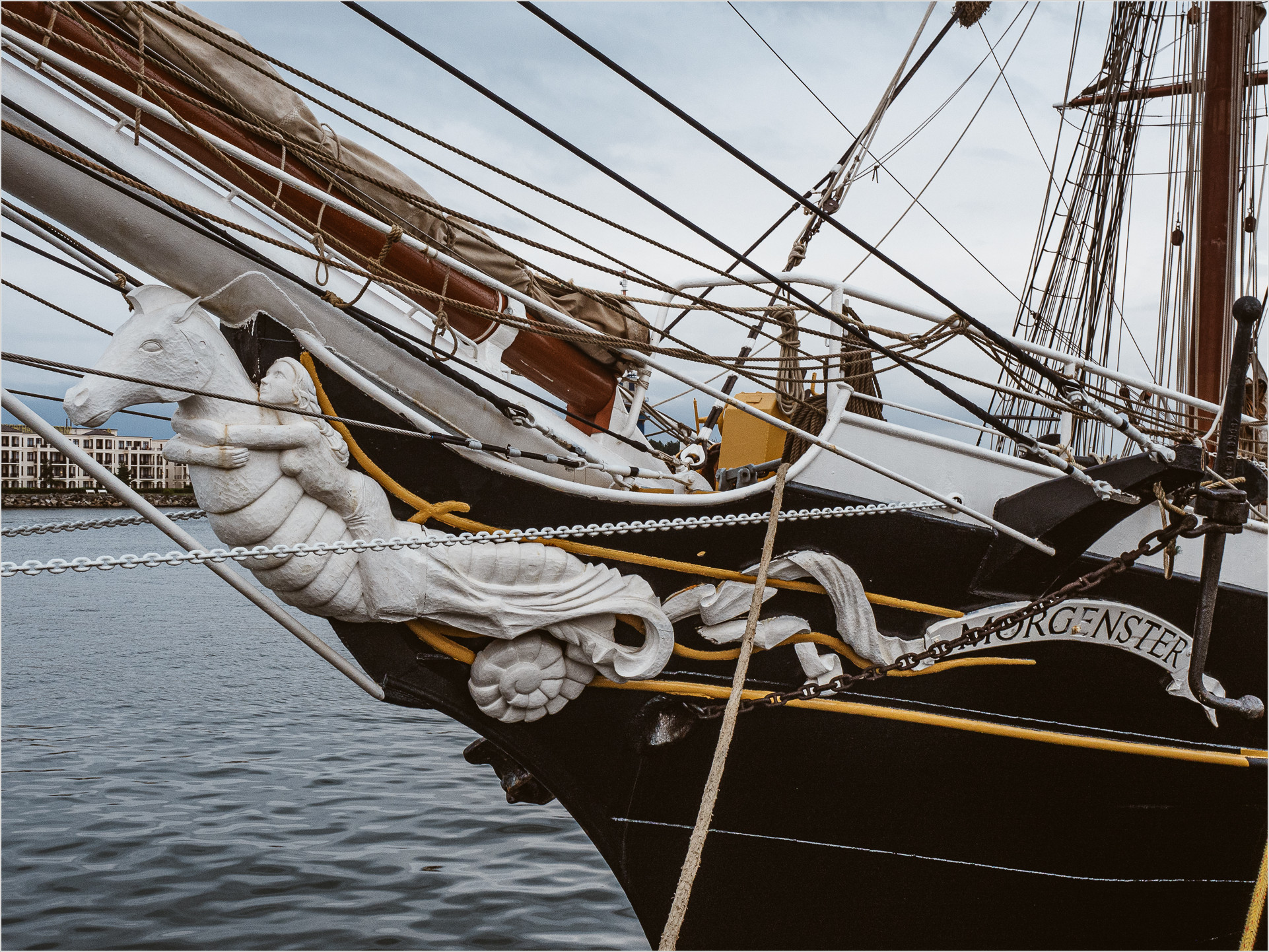 Ich laufe also gegen halb zwei zügigen Schrittes die rund 5 Kilometer von Wilhelmshöhe zurück, um mich für eins der beiden Schiffe zu entscheiden, die beide um 15 Uhr auslaufen wollen. Die spontane Entscheidung fällt auf die Morgenster. Laut einer Website ist die Morgenster „…eine Brigg, ein zweimastiges Segelschiff vollständig quer getakelt. Diese besonders schöne Takelage wurde den amerikanischen Klippern aus dem 18. Jahrhundert nachempfunden.“