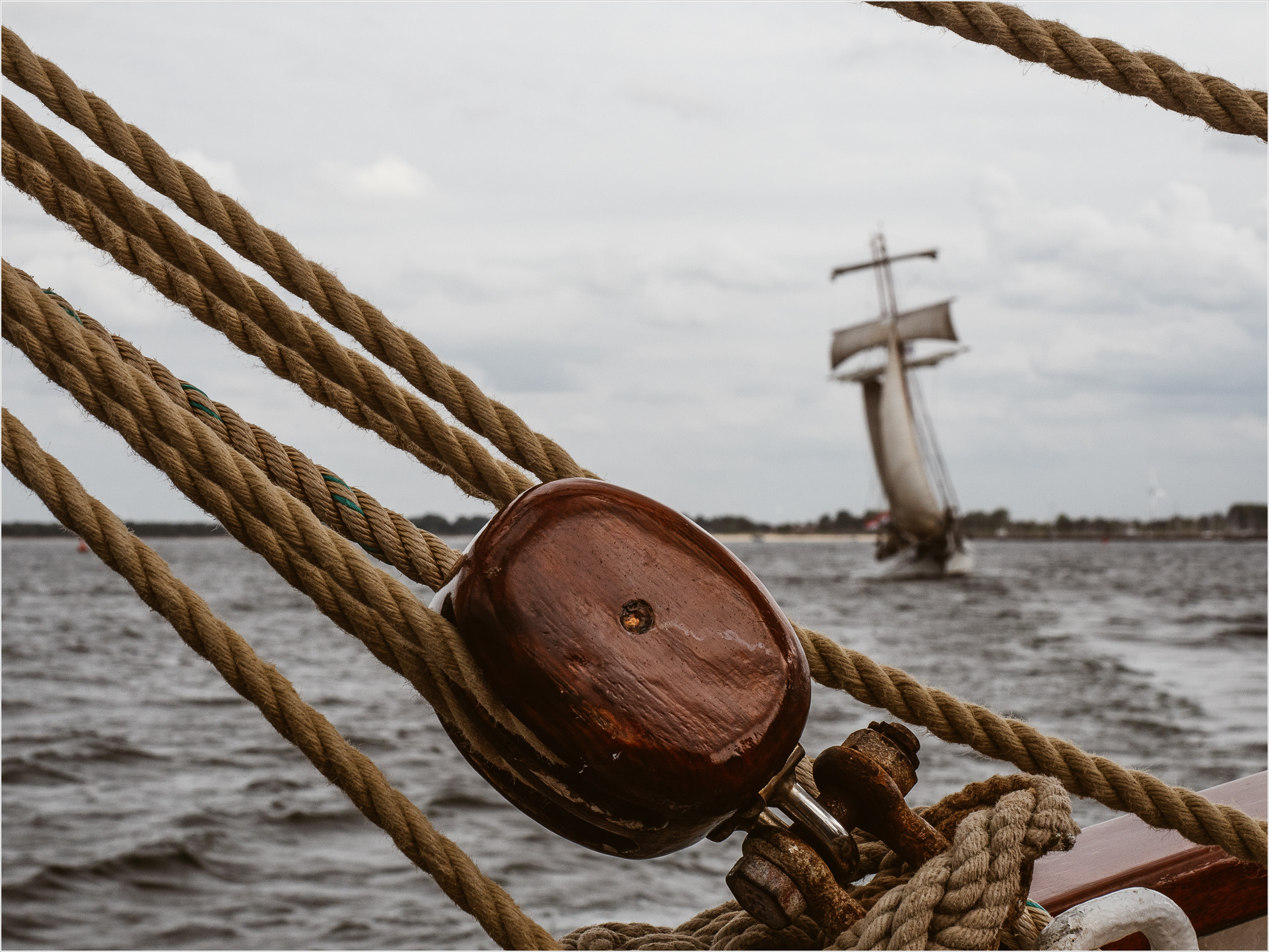 Wie auch beim letzten Törn ist meine innere Aufgabe erstmal Fotos zu schießen. Ich habe etwas zu tun und merke den Seegang gar nicht so. Nach einer guten Stunde kommt die Kamera in die Tasche und mein Magen registriert jetzt doch etwas genauer, dass sich da was unnatürlich bewegt. Ich suche mir also ein ruhiges Plätzchen mittschiffs und konzentriere mich auf den Horizont. Nur nichts anmerken lassen. Dem Rest der Mitsegler scheint es gut zu gehen, es wird kräftig Bier geordert. Ich lasse mich auf einen Kaffee ein, damit der Magen was zu tun hat und versuche das flaue Gefühl zu ignorieren.
