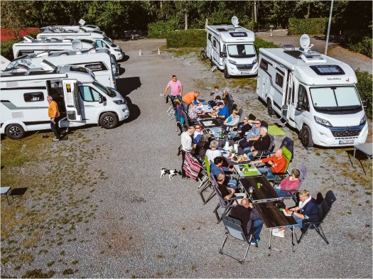 Am Abend biegen sich die Tische dann unter herzhaften Leckereien, während draußen auf dem Grill nach und nach 240 Würstchen gegrillt werden und auf Abnehmer warten. Die Stimmung ist gut, viele haben sich inzwischen näher kennengelernt und so werden aus virtuellen Kontakten echte Freundschaften. Nach einem großen Dankeschön an die Organisatoren kann die Party dann endlich steigen. Der DJ „legt auf“ und bis um halb zwei in der Nacht klingt der Sound über den Wohnmobilhafen Twistesee.