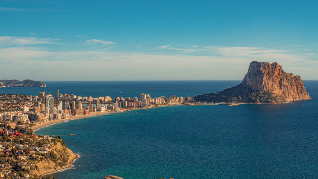 Von dort erschließt sich ein herrliches Panorama auf die Bucht von Calpe, gekrönt vom Ifach, der von hier oben, der anderen Seite, gar nicht mehr so hoch aussieht. Der Blick nach unten zeigt viel Finca mit Pool am Hang, der eigentliche Strandbereich natürlich die Hochhausfassaden. Mit einem kurzen Abstecher zur anderen Seite, hat man einen weiter Blick hinüber entlang der Costa Blanca und dem Städtchen Benidorm.