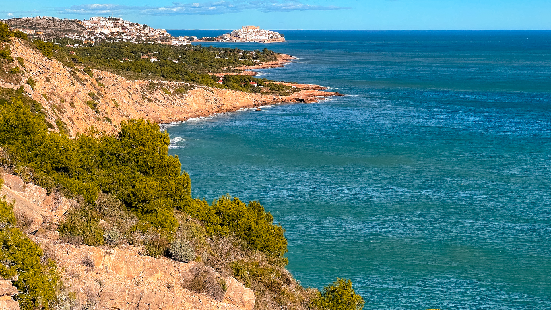 Damit wir nicht nur auf der faulen Haut in der Sonne Spaniens rumliegen, obwohl das durchaus erstrebenswert ist, haben wir ja unsere E-Bikes dabei. Nachdem sich der Wind endlich mal gelegt hat sind wir Richtung Alcossebre gefahren, aber das Ziel ist der Torre Badum, rund 8 km von unserem Campingplatz entfernt. Der Turm ist arabischen Ursprungs und eine Verteidigungsinfrastruktur, mit der die Bewohner der Burg von Peñíscola durch Rauchsignale vor der Ankunft des Feindes gewarnt wurden. Er befindet sich auf der wichtigsten Klippe der Serra d’Irta, einer bergigen Linie parallel zur Küste.