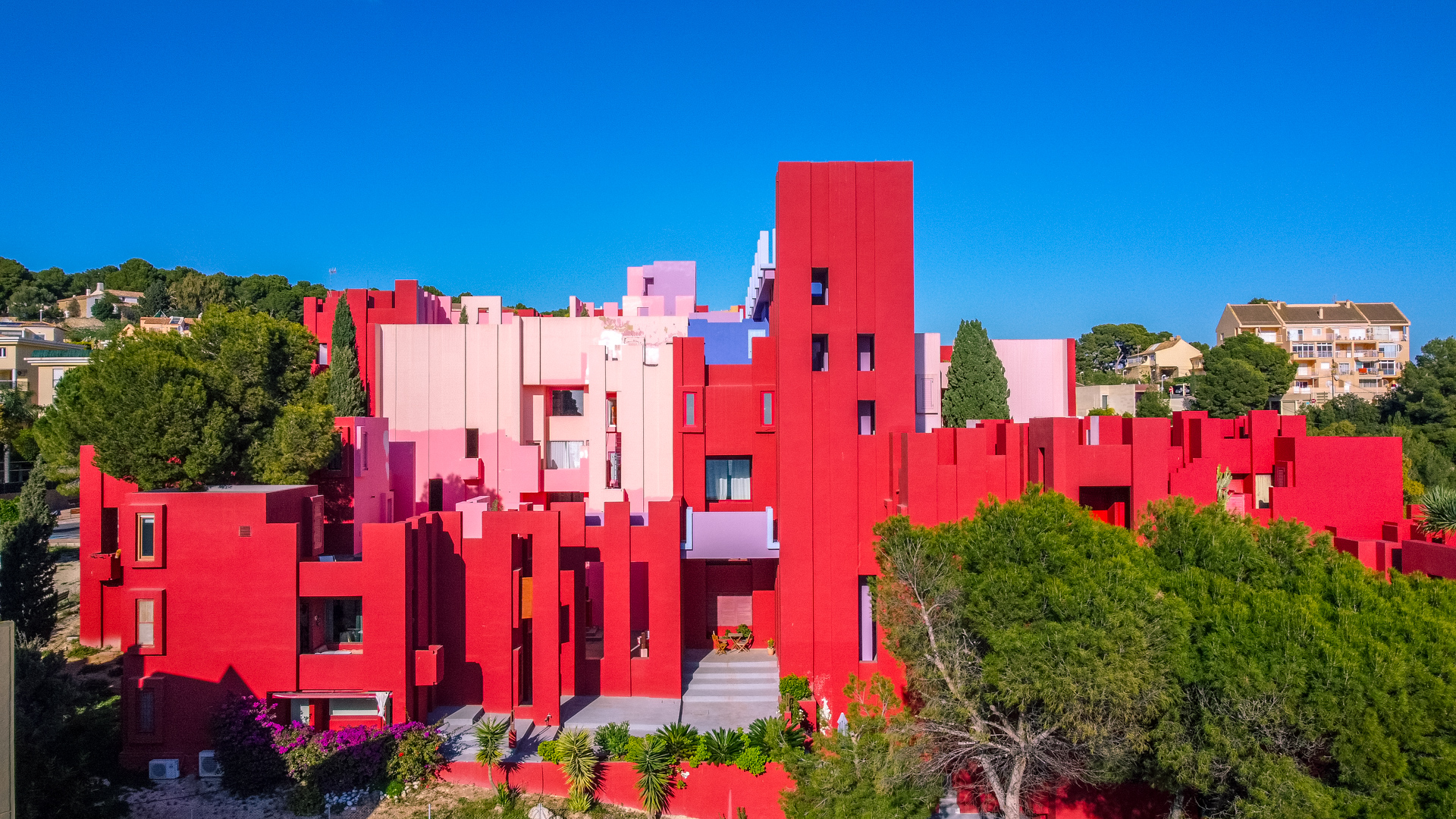 Neben viel schrecklicher Architektur an den Stränden der Costa Blanca ragen zwei Bauwerke in Calpe heraus, die in den 70er Jahren vom Architekten Ricardo Bofill entworfen wurden, der letzte Woche im Alter von 83 Jahren verstorben ist. Eins davon ist das „La Muralla Roja“ – die rote Mauer. Ein Grund für mich sich dieses Gebäude näher anzuschauen, dass unter „Ricardo Bofills 10 berühmtesten Werken“ eingestuft wird. Mit Kamera und Drohne bewaffnet mache ich mich also mit dem Rad auf den Weg durch Calpe.