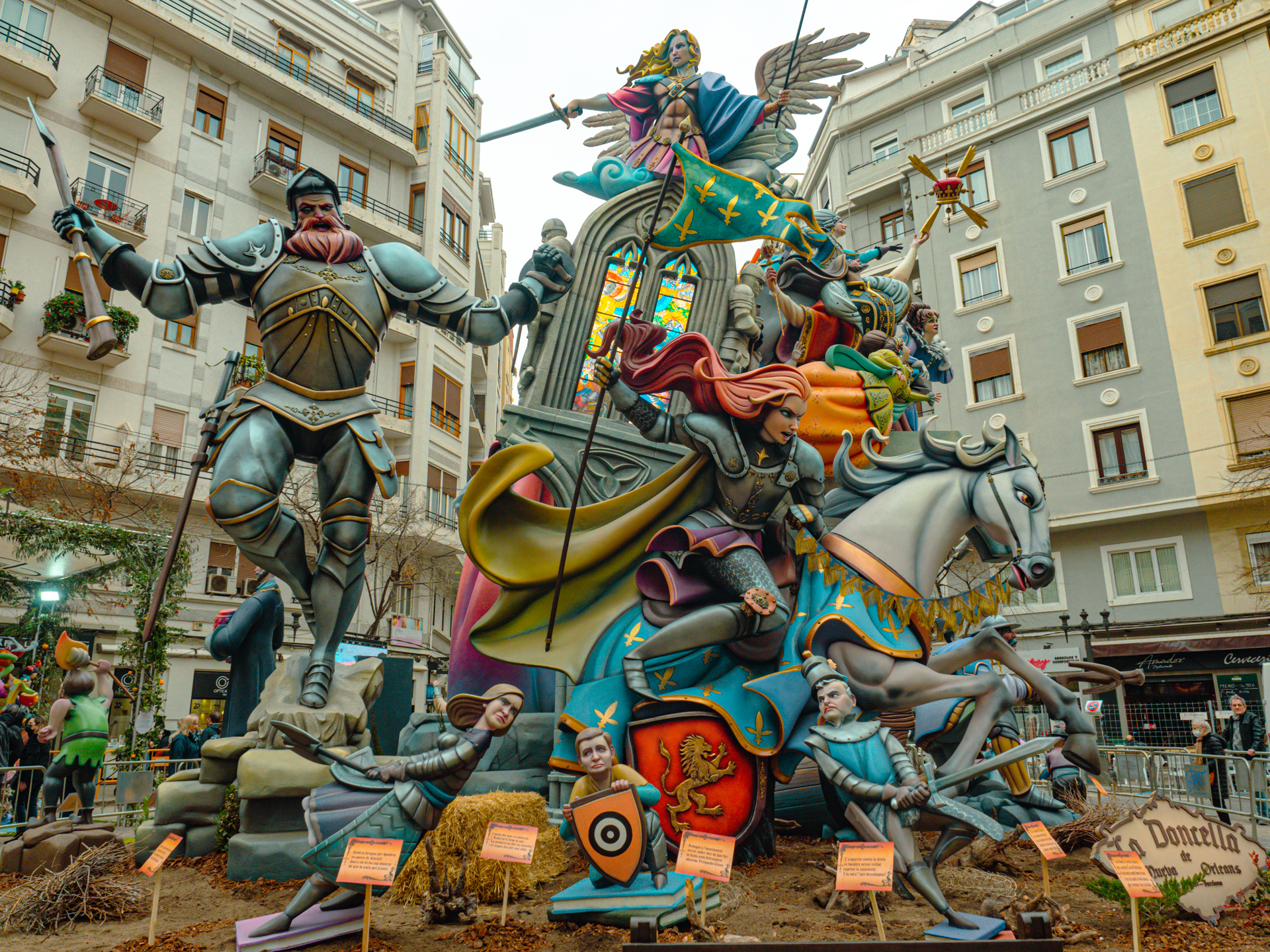 Die Fallas oder Falles finden jedes Jahr in Valencia und zahlreichen Orten der Comunidad Valenciana vom 15. bis zum 19. März statt. Über die ganze Woche werden die Figuren erstellt und am Mittwoch Abend ist in der Regel alles fertig. Dann werden sie bewertet und es gibt ein Voting, was dafür sorgt das eine der rund 700 Skulpturen überlebt. Am letzten Tag des Festes werden nämlich alle Figuren verbrannt. Die mit viel Mühe und Arbeit entstandenen Figurengruppen gehen komplett in Flammen auf und bilden damit die Wiedergeburt der nächsten Fallas.