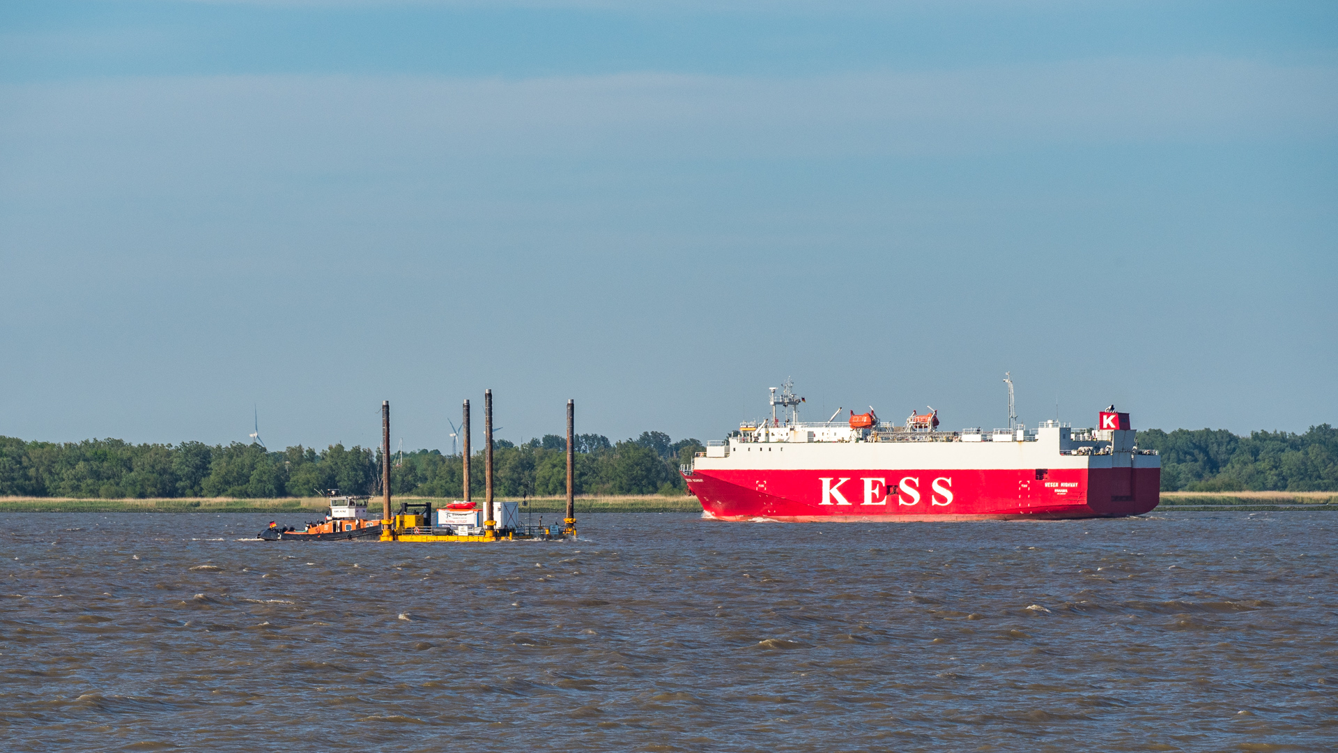 Zwischendurch kommen mal kleinere Containerschiffe des Weges daher, oder auch der Katamaran „Halunder Jet“ der FRS Helgoline, mit dem man in dreieinhalb Stunden von Hamburg zur Insel Helgoland fahren kann. Von Cuxhaven braucht er sogar nur 70 Minuten. Mit seinen 4, insgesamt über 12.000 PS starken Motoren, erreicht er dabei eine Geschwindigkeit von fast 70 km/h.