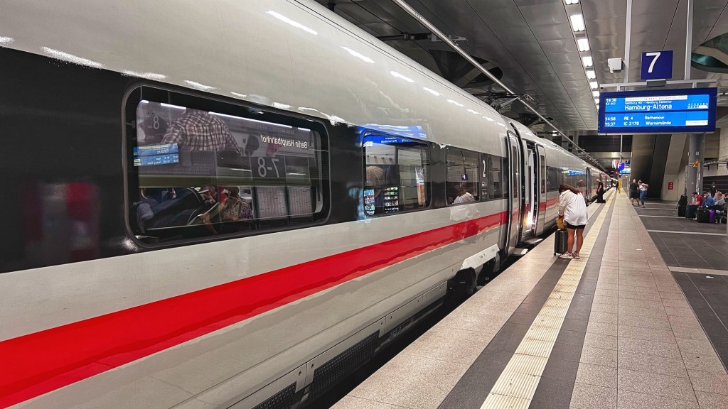 An den beiden Gleisen im Berliner Tiefbahnhof fahren u.a. die RE’s nach Rostock und Stralsund, zwischendurch ergänzt durch IC und ICE nach Binz, Warnemünde, an die See, dort wo eigentlich alle hinwollen. Damit also keine Knäuel beim Einsteigen entstehen, kümmern wir uns im Voraus um die richtige Positionierung der zahlreichen Reisenden.