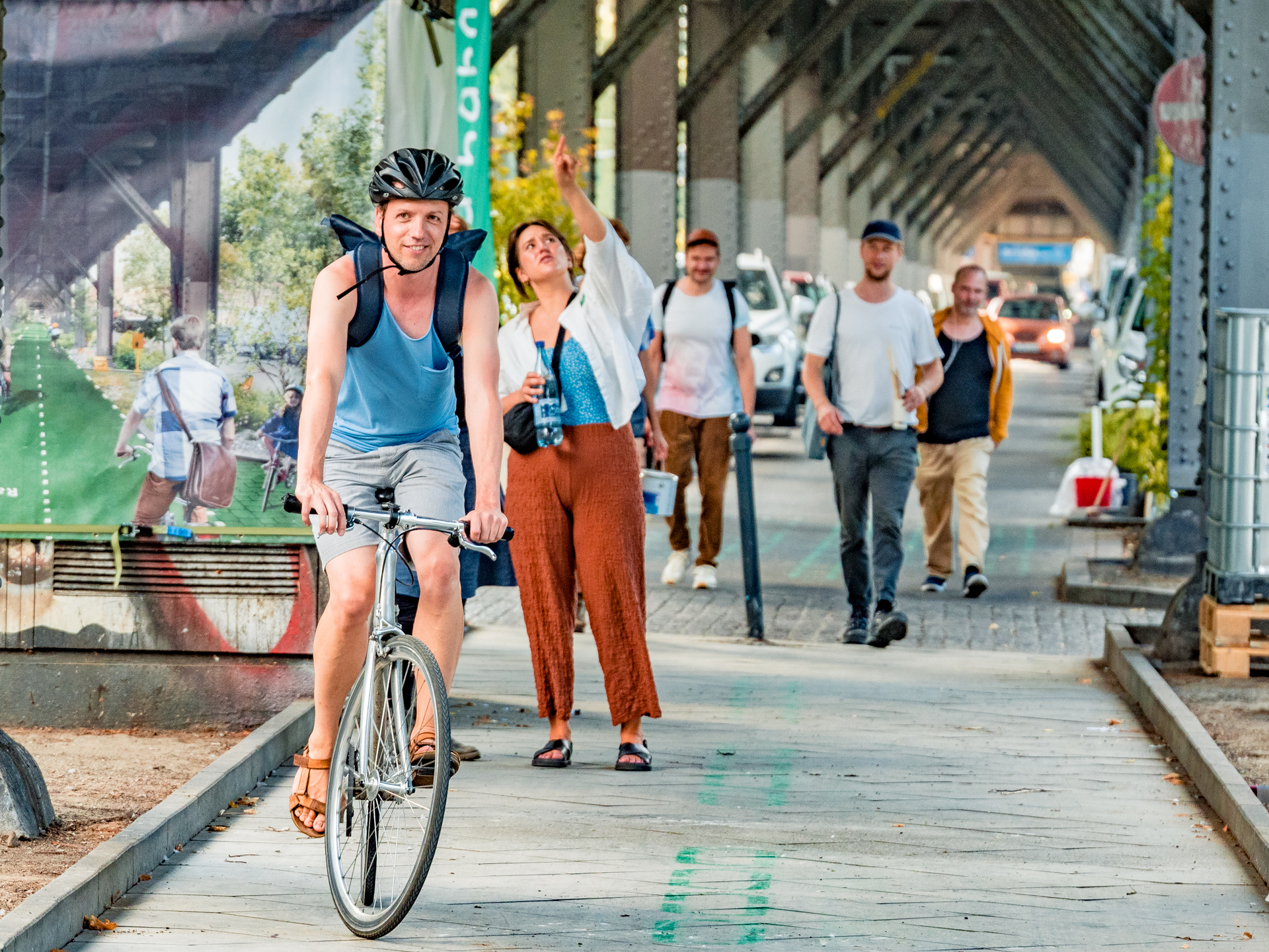 In diesem Fall bedeutet das konkret, die Parkplätze unter dem U1 Viadukt werden umgewandelt. In Aktionszonen, Ruhezonen, Pflanzzonen, ganz im Sinne einer angenehmen und trockenen Fahrt mit dem Rad unter der Trasse der U1, die am Ende bis zum Zoo führen soll. Aber bis dahin läuft sicher noch viel Wasser den Landwehrkanal hinunter. Die erste Etappe, deren Umsetzung jetzt losgehen soll, startet in der Nähe des U-Bahnhofes Görlitzer Bahnhof.