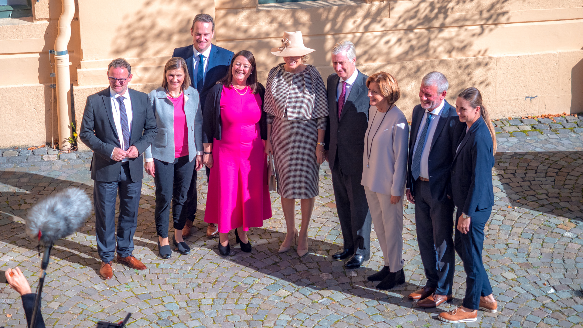Meine Kamera liegt bereit und mein kleines „Reporterherz“ wird ganz aufgeregt, als Bewegung in die Sache kommt. Suche mir schnell einen Platz auf einer Rampe und bekomme das Gruppenfoto für Presse und TV mit. Anschließend mischen sich König Philippe und Königin Mathilde noch ein wenig unters Volk und ermöglichen mir so auch noch ein schönes Foto, bevor sie weiterfahren.