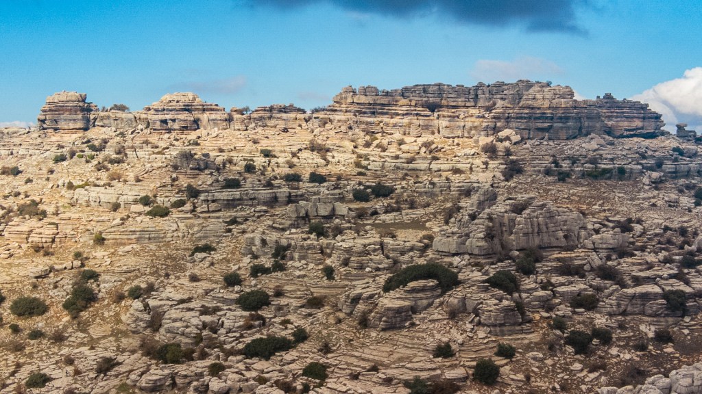 Nachem wir gestern den „Caminito del Rey“ durchwandert und heute vormittag der Alcazaba von Antequera einen Besuch abgestattet haben, (Berichte folgen später) schrauben wir uns mit unserem Wohnmobil über jede Menge Serpentinen auf knapp 1200 Meter. Dort wartet das Felsenmeer „El Torcal“ auf uns.