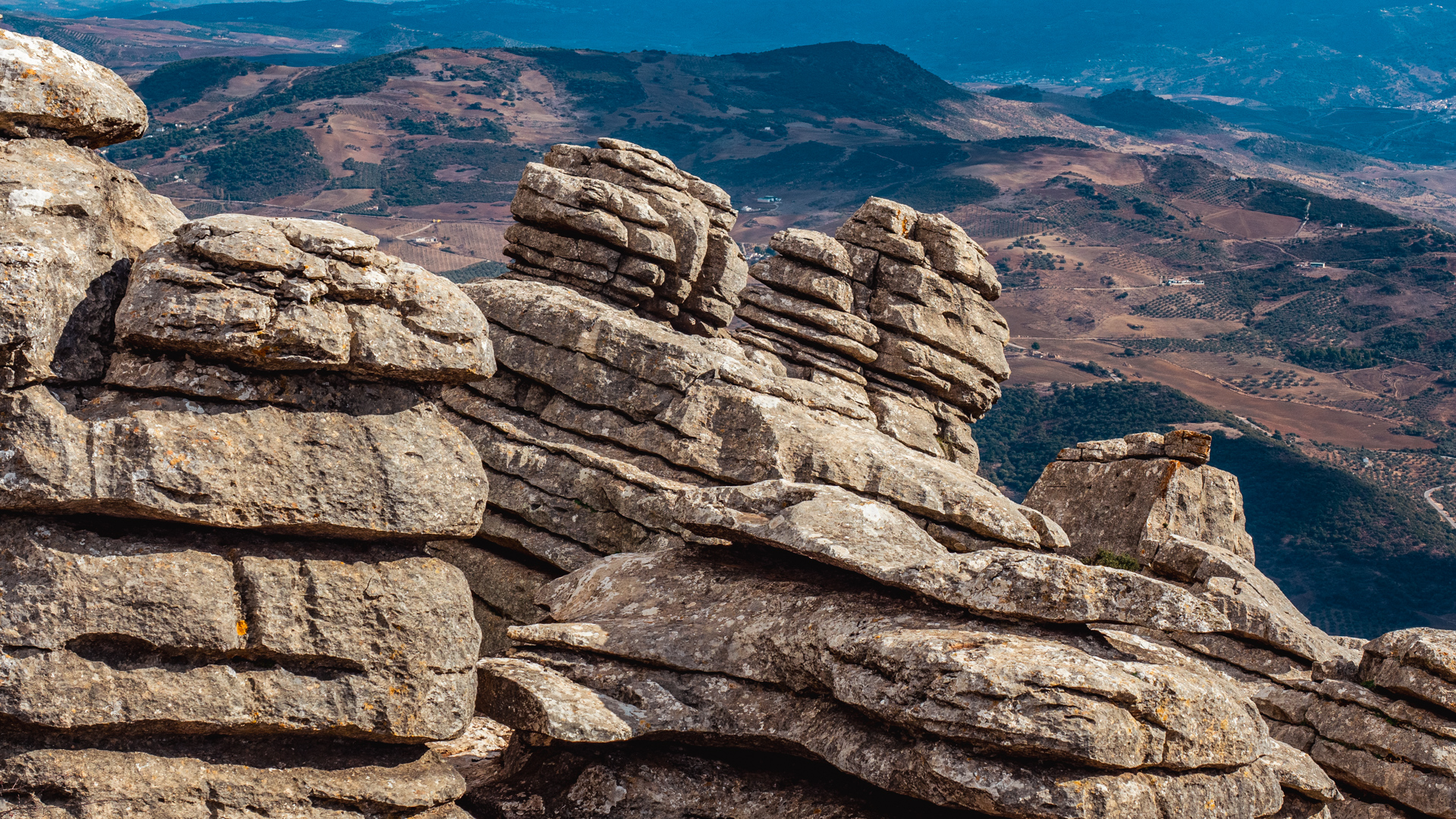 Es fehlt nur noch der Steinbeißer um das Ensemble der Millionen von Steinen zu vervollständigen. Das faszinierendste ist ja der Gedanke, dass hier auf gut 1200 Meter Höhe vor 100 Millionen Jahren, im Jura, hier alles unter Wasser stand. Das ist bereits am Caminito del Rey gut zu erkennen, oder wenn man mitten in den Felsen versteinerte Ammonite findet. Natürlich nur wenn man lange genug sucht, oder zufällig den richtigen Stein rumdreht. Ein faszinierende Gegend mit langer geologischer Geschichte. Hier zum Schluss noch eine Sammlung der entstandenen Bilder von „El Torcal“.