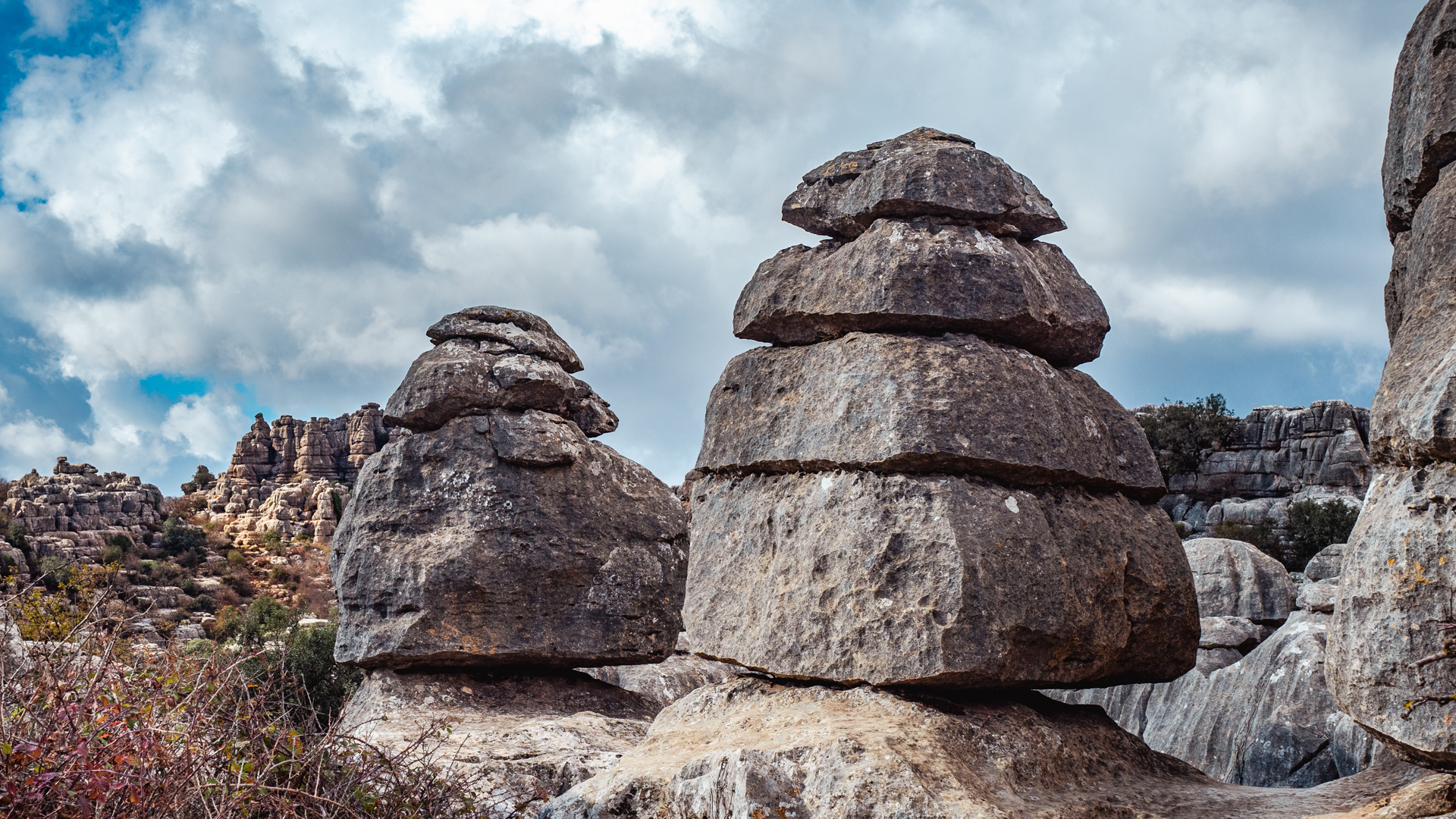 Viele der Formationen sehen aus wie diese kleinen Steintürme die man in Norwegen findet. Nur sind die Formationen in „El Torcal“ alle „noch“ fest miteinander verbunden. Allerdings werden Umwelteinflüsse wie Wind, Regen und Sturm dafür sorgen, dass die Figuren nach und nach verwittern.