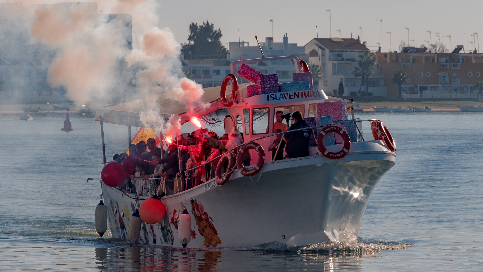Wieder eine gute Gelegenheit meine Kamera zu schnappen und nach Isla Cristina zu fahren. Dort kam gestern um 16 Uhr pünktlich das Schiff mit den Hl. 3 Königen am Hafen an, begeistert begrüßt von den vielen wartenden Kindern mit ihren Eltern. Die vier Motivwagen mit verkleideten Kindern wurden vorab beladen mit Kisten voll mit Bonbons und kleinen Geschenken. Dann begann der mehrere Kilometer lange Umzug durch die Stadt. Eine kleine Ausbeute an Bonbons konnte ich auch mit nach Hause bringen. Aber zuviel wollte ich den Kindern nicht „rauben“ 😉