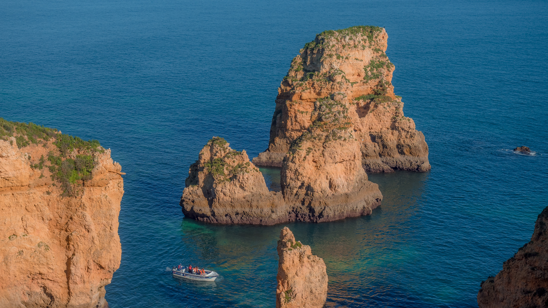 Die Ponta da Piedade (portugiesisch: Spitze des Erbarmens) ist die Spitze einer steilen Landzunge, die bei Lagos in den Atlantik ragt. Eine 20 Meter hohe Felsklippenlandschaft mit versteckten Stränden und Buchten, und der Möglichkeit mit Booten in die Grotten zu fahren. Die Ponta da Piedade gilt als eine der schönsten Sehenswürdigkeiten in Portugal und als die schönste Felsformation der Algarve. (Wiki)
