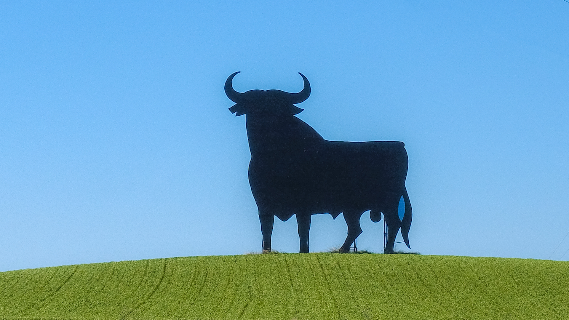 Gleich um die Ecke wacht riesengroß das Wahrzeichen Andalusiens „EL Toro“ von einem Hügel über dem Gebiet, wird aber zur Rettung auch nicht viel beitragen können.