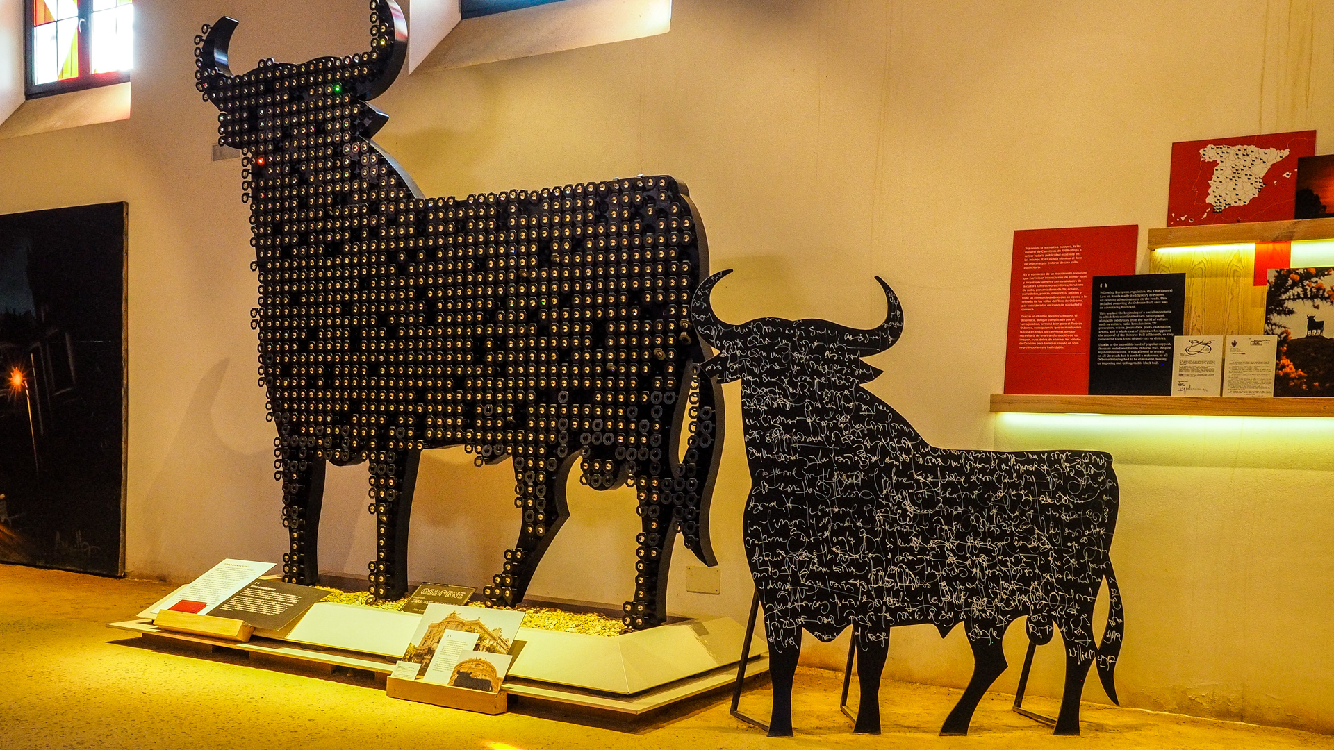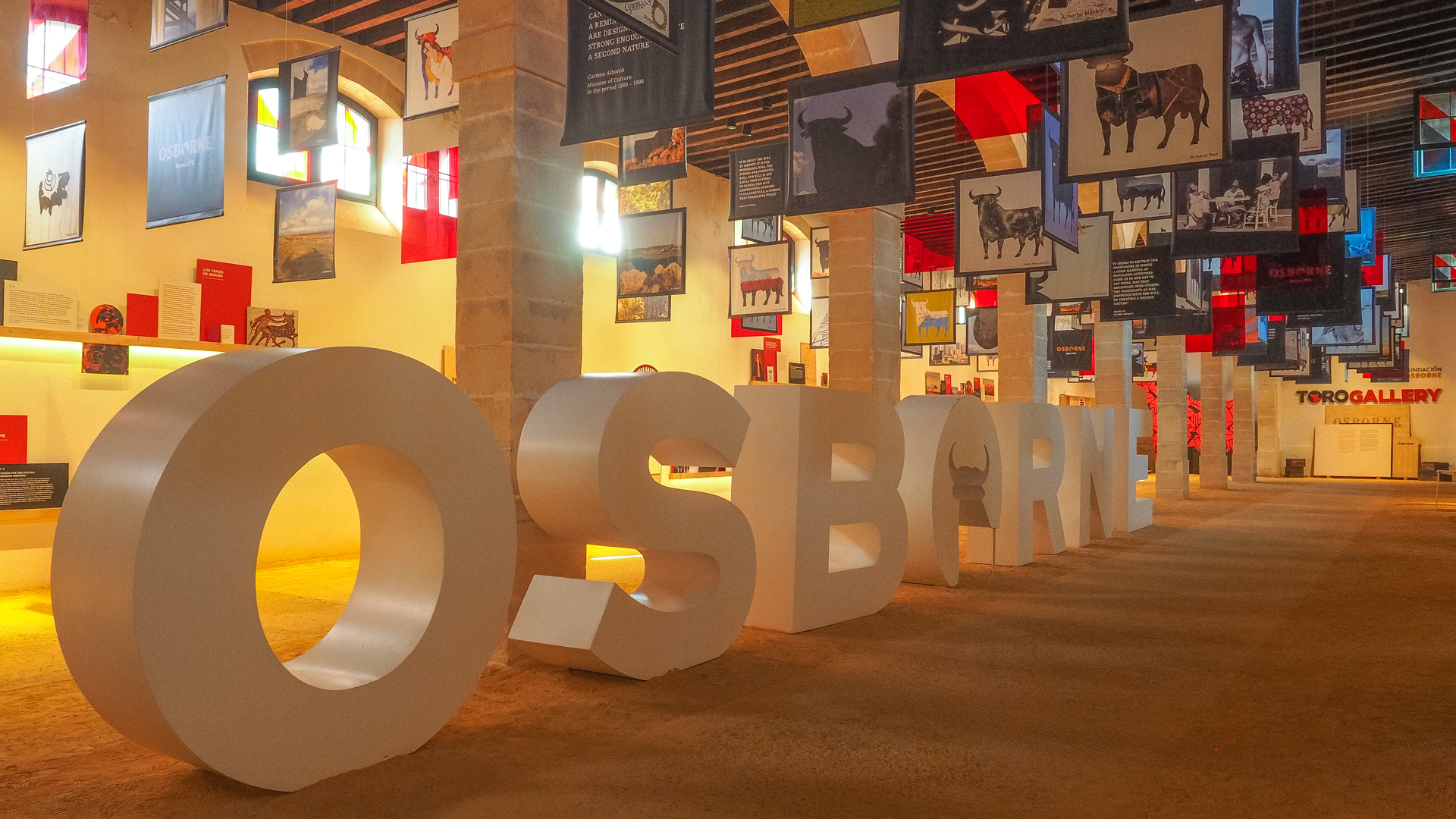 Im angeschlossenen Museum dreht sich alles um den Stier „EL Toro“, das Markenzeichen von Osborne. Ob auf dem Schuh von Tennisspieler Nadal, oder auf dem Trikot vom VFL Bochum, ob bemalt von Keith Haring, oder bestückt mit Kristallen von Swarovski, „El Toro“ ist das Zentrum des Marketings der Firma Osborne.