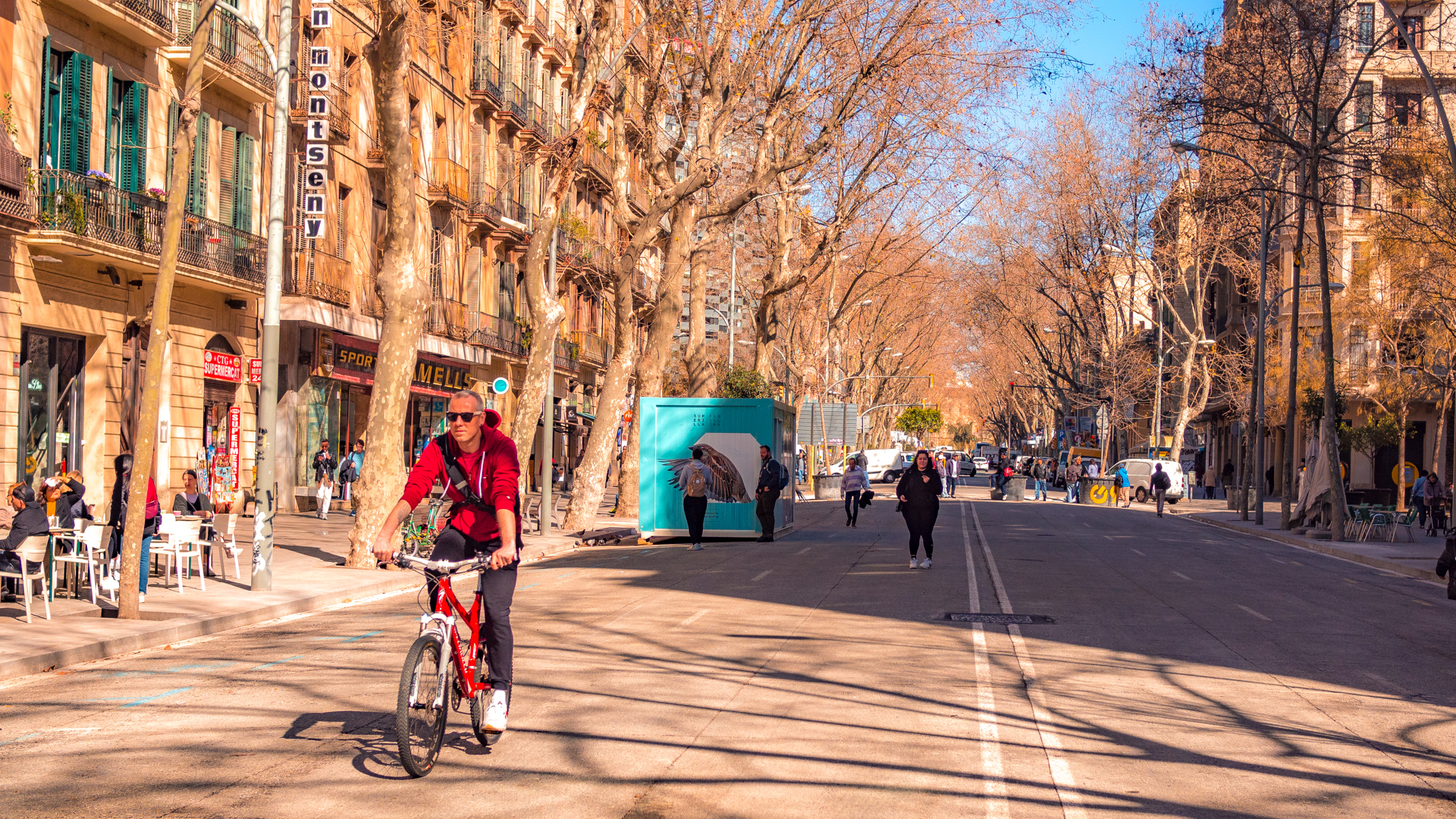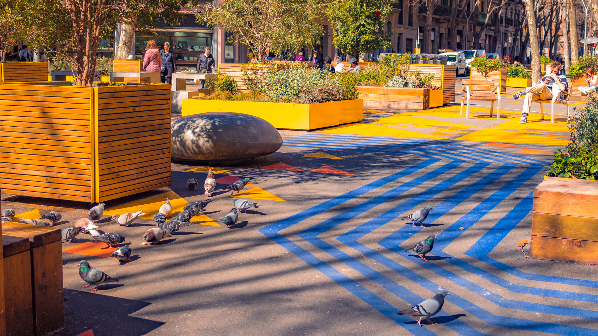 Nun ist Barcelona für diese Art Umgestaltung geradezu prädestiniert, kann man doch auf dem Titelbild sehen, wie die Stadt aufgebaut ist. Durch die vorhandene Blockbauweise lassen sich Blöcke zusammenfassen, eben in Superblocks, kleine Straßen vom Autoverkehr befreien und diesen nur in bestimmten Magistralen erlauben. Auf allen Bildern im Beitrag standen und fuhren vor Kurzem noch Autos. Also keine lieblos gesperrte Friedrichstraße in Berlin, deren Aufenthaltsqualität damit nicht zwingend verbessert wurde, keine willkürliche Bestückung der Bergmannstraße mit Holzmöbeln, sondern wirklich, konsequenter Rückbau von Straßen. Mit allen Konsequenzen. Es ist keine Rückkehr zum alten Zustand vorgesehen, der Mensch steht im Vordergrund des Handelns, nicht das Auto.