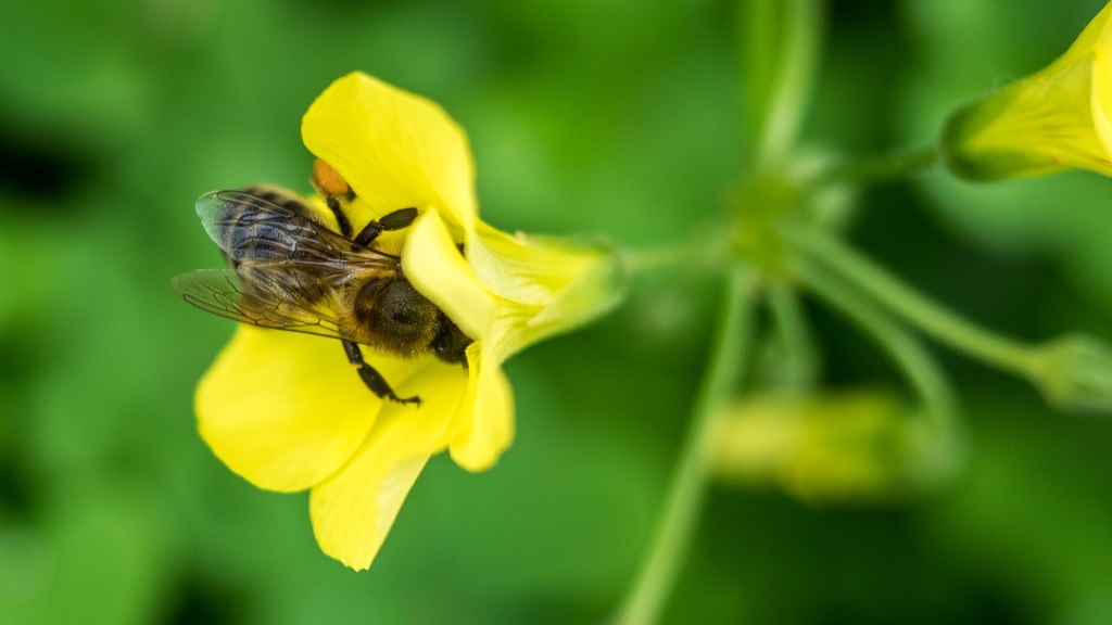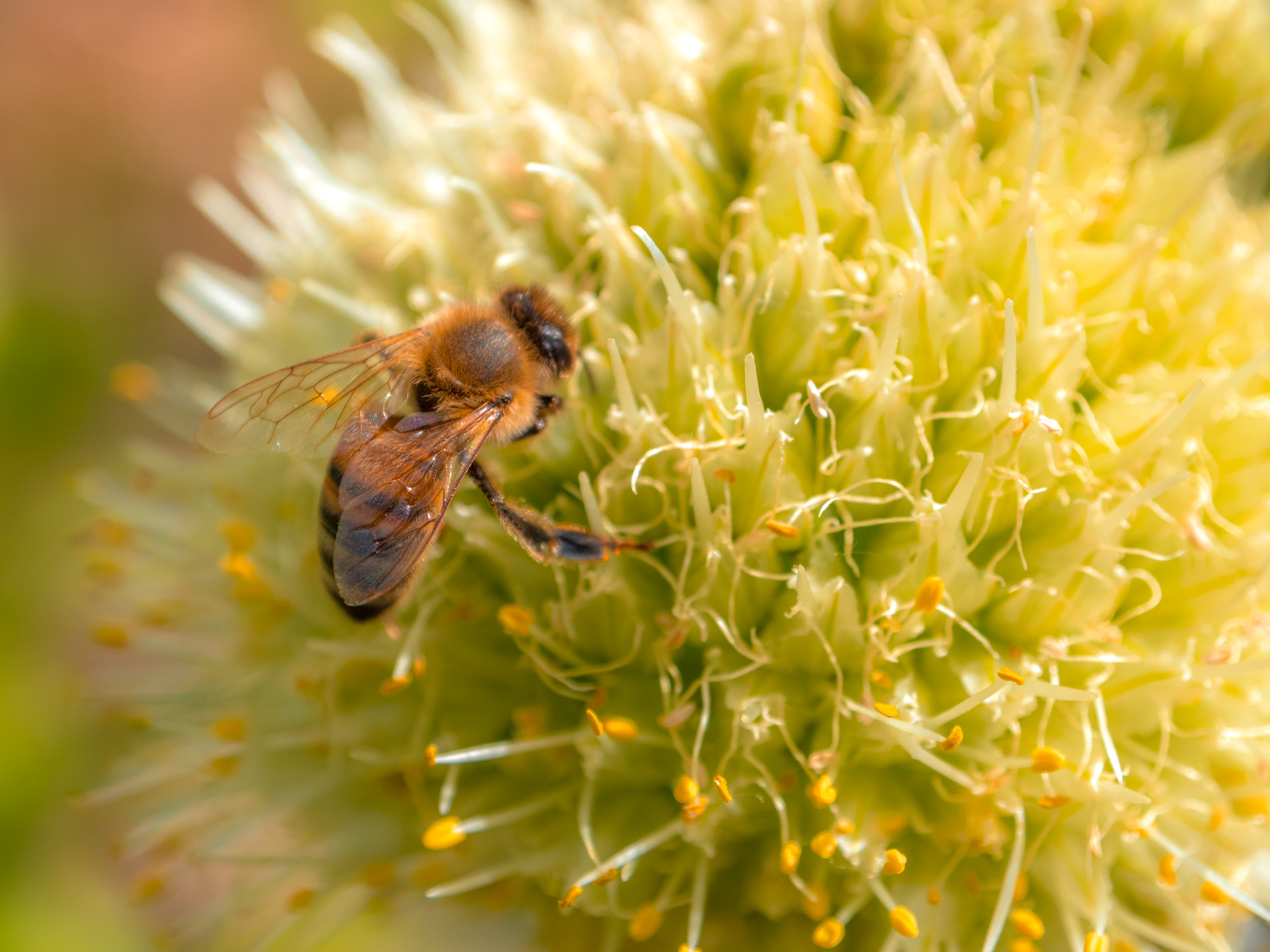 Ich versuche ja gern Bienen zu fotografieren, aber es ist doch sehr fummelig. Immer wird rumgesummst, rumgeflogen, kaum sitzt das Bienchen mal auf einer Blüte wird weitergeflogen. Weiß auch nicht wieso die so unstet sind. Ist die anvisierte Blume schon abgeerntet? Hofft die Biene woanders bessere Pollen abzustauben? Warum aber fliegen sie oft immer in dieselbe Blüte? Fragen über Fragen. Vielleicht sind es ja aber auch Übungsbienen. Eine Sommerbiene hat Zeit ihres Lebens – was wahrlich nicht sehr lang ist – verschiedene Aufgaben und nur am Ende ihres Zyklus ist sie eine Pollensammlerin.