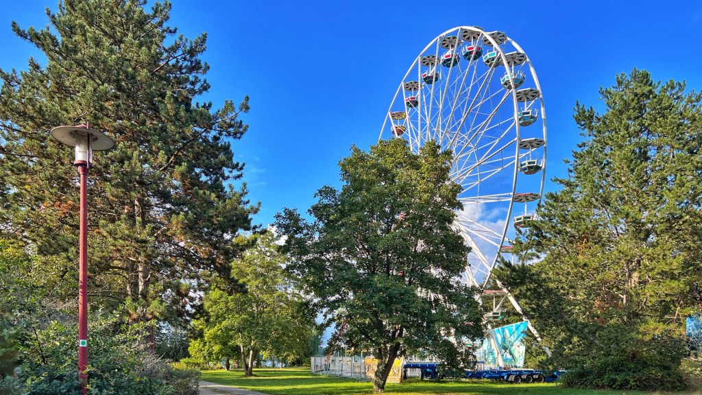 Nachdem der gestrige Tag eher ins Wasser gefallen war, überrascht uns der heutige Nachmittag mit blauem Himmel und Sonne. SUP Fahrer trauen sich aufs Wasser, im Hintergrund steigt der Rauch eines Kraftwerks gerade in die Luft. Das Riesenrad am Strand soll sich bei schönem Wetter eigentlich drehen, so steht es zumindest am Eingang, aber man rechnet wohl mitten in der Woche nicht mit genügend Publikum.