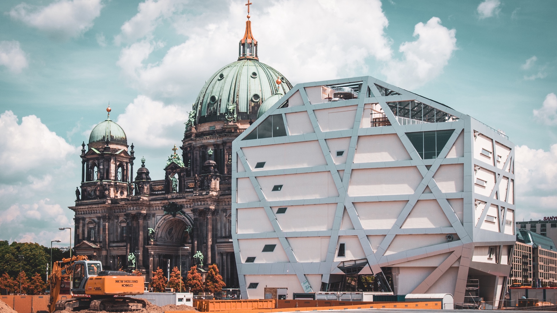 Bis 2018 informierte sie interessierte Berliner und Besucher über die Planung des Humboldt Forums, denn es sollte ja kein Schloss werden. Eher so ein Zwitter. Modern meets Klassik. Das macht das Gebäude auch architektonisch interessant. Die Hardliner unter den Schloss Befürwortern hätten es glaub ich gern nur klassisch gehabt. Aber sie konnten sich immerhin damit durchsetzen, dass das Forum eine Kuppel bekam und obendrauf wurde sogar noch ein Kreuz gesetzt. Sieht alles schon sehr majestätisch aus, folgt aber innen einem Bildungsauftrag im Sinne von „Alexander vom Humboldt„.