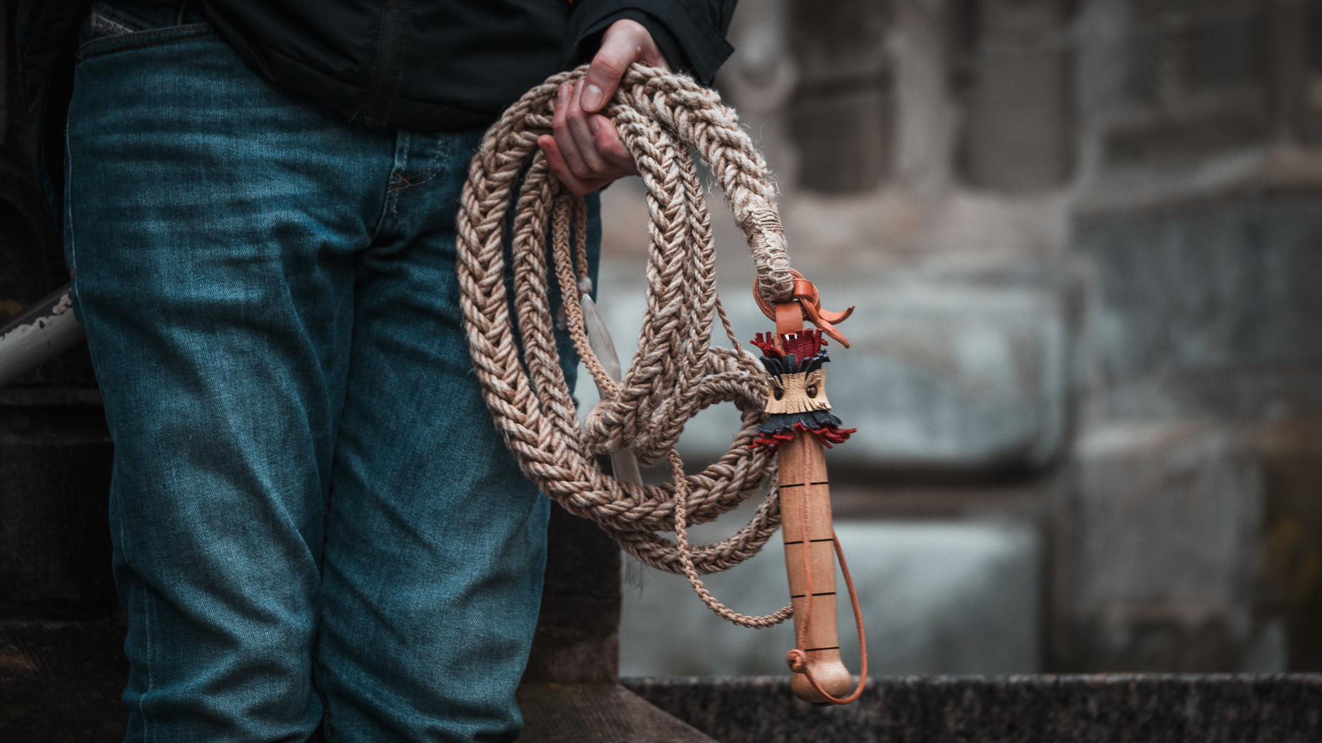 Nach und nach versuchen sich viele der mit Karbatschen „bewaffneten“ Männer und Frauen an der Knallerei und auch der Nachwuchs kommt nicht zu kurz. Ich habe mal bei Wikipedia vorbeigeschaut, wie das mit der Knallerei eigentlich funktioniert.
