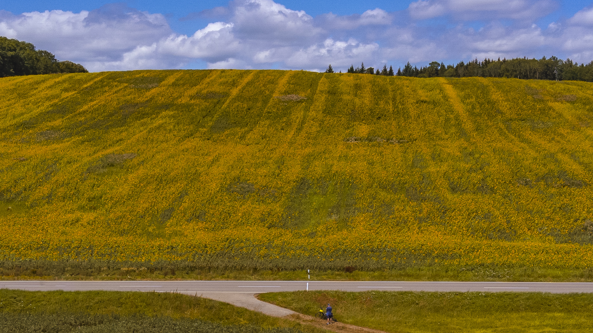„Ein Sonnenblumenfeld im vollen Blühen ist ein Meer aus Gelb und Grün, ein lebendiges Gemälde, das die Seele berührt. Die Luft ist erfüllt von einem sanften Duft, und ein Summen von Bienen und anderen Insekten, die von Blüte zu Blüte fliegen, erfüllt die Ohren. Die Sonnenblumen scheinen sich zu unterhalten, flüsternd in einer Sprache, die nur die Natur kennt.“