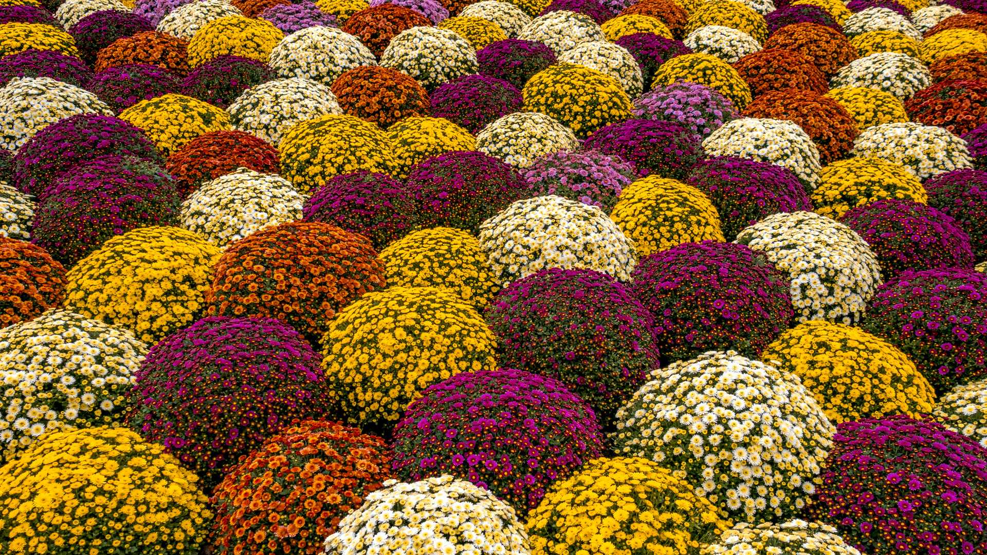 Noch kann man die Dahlienkönigin auf der Insel Mainau wählen und sich an der Farbenpracht erfreuen, da buhlt schon die nächste Blume um die Aufmerksamkeit der Besucher: Die Chrysantheme. Nicht ganz so opulent wie die Dahlie mit ihren teilweise riesengroßen Blüten, aber auch farblich ansprechend und etwas für jeden Balkon.