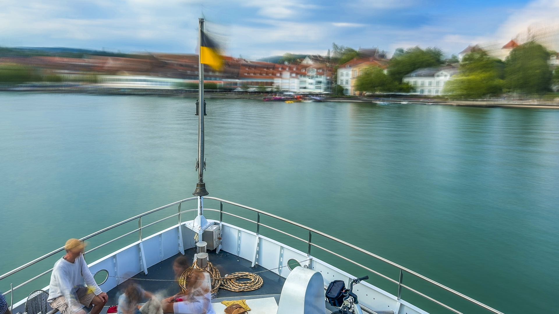 Sonntag, 17 Uhr, Anlegestelle 1 am Landungsplatz in Überlingen. Die Kollegen und Kolleginnen verabschieden sich voneinander, ein letztes Mal wird unter lautem Geschepper die Rampe von der MS Überlingen an Land geschoben, dann legt das Schiff der BSB unter Glockengeläut und kräftigen Hupen ab. Eine Betrachterin am Landungsplatz winkt noch wehmütig der Besatzung und den Passagieren zu, dann dreht das Schiff langsam in Richtung Dingelsdorf.