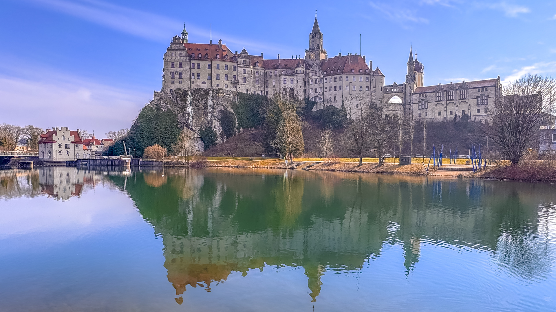 Angeregt durch die Ausstellung des Fotografen David Osborne in der Leica Galerie in Konstanz, fahren wir am letzten Sonntag mit dem Auto nach Sigmaringen. Das imposante Hohenzollernschloss thront dort auf dem Bergrücken oberhalb der Donau. Im Gespräch mit dem Fotografen bei einem Besuch der Galerie habe ich ihm die Frage gestellt, wie lange er denn für seine Bilder braucht. Denn dass was dort ausgehängt ist, hat nur bedingt mit der Realität zu tun. Das kann man auf dem folgenden Bild gut erkennen.