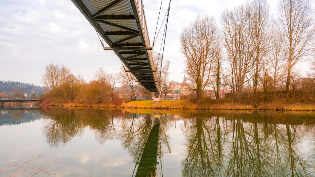 Ich habe auch versucht herauszubekommen, von wo David Osborne sein Bild aufgenommen hat. Vom Ufer der Donau passt die Perspektive nicht, zu flach. Vom Aussichtspunkt auf dem Mühlberg auch nicht, zu hoch. Beim Blick über das Geländer fällt mir gut zehn Meter tiefer ein Felsvorsprung auf, der durchaus einen Fotografen mit seinem Stativ aufnehmen könnte. Das könnte passen.