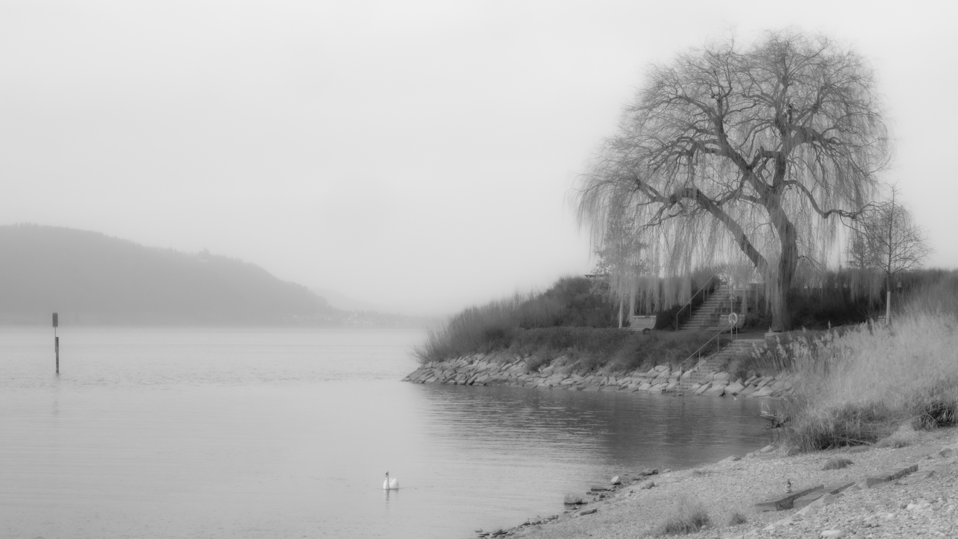 Stille ist in unserer lauten und bewegten Zeit etwas geworden, was man wirklich vermisst. Aber es gibt sie noch, die Enklaven der Ruhe. Eine solche habe ich im Rahmen der #52WochenFotoChallenge Anfang letzter Woche am Uferpark in Überlingen gefunden. Es ist kalt und neblig und ich bin dort unten am See fast alleine. Die Autostraße liegt hinter einer Böschung, ab und an hört man nur leise einen Zug der Bodensee-Gürtelbahn vorbeihuschen. Selbst die krächzenden Möwen haben frei, oder tummeln sich lieber weit weg am Landungsplatz.