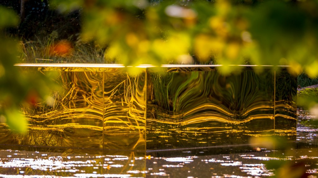 Nach dem Schneefall der letzten Tage konnte ich endlich mein Projekt fortsetzen: Waldeskunst zu allen Jahreszeiten. Im Herbst war ich auch da, hab aber irgendwie versäumt, das auch hier zu posten. Dafür habe ich jetzt den Reflexionsquader fotografieren können. Drehte er sich im Herbst noch langsam im Wasser im Einklang mit dem Wind, steckt er jetzt eingefroren fest im Eis. Ich hab kurz getestet ob mich das Eis trägt, um näher heranzukommen, mich aber letztlich doch nicht getraut. Zu viele Filme geschaut 🙂