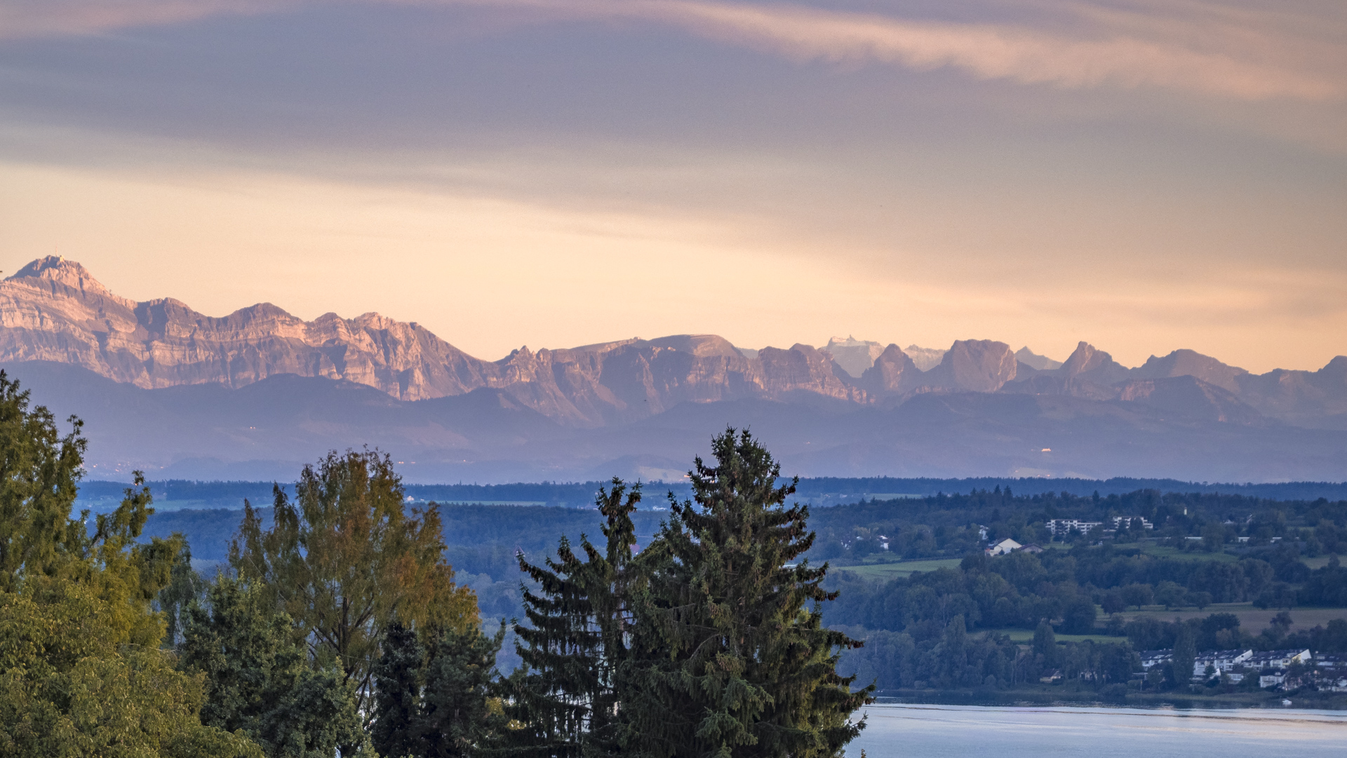Interessanterweise gibt es auf der anderen Seite des Bodensees – von unserer Wohnung oft gut zu sehen – weitere „7 Churfirsten„. Allerdings sind die wesentlich höher – alle über 2000 Meter hoch. Sie gehören zum Appenzeller Gebirge in der Schweiz. Hier im Foto an der rechten Seite. Sehen ein wenig aus wie eine Packung Toblerone. Vielleicht waren sie sogar das Vorbild für das Design der markanten Schweizer Schokolade 😉