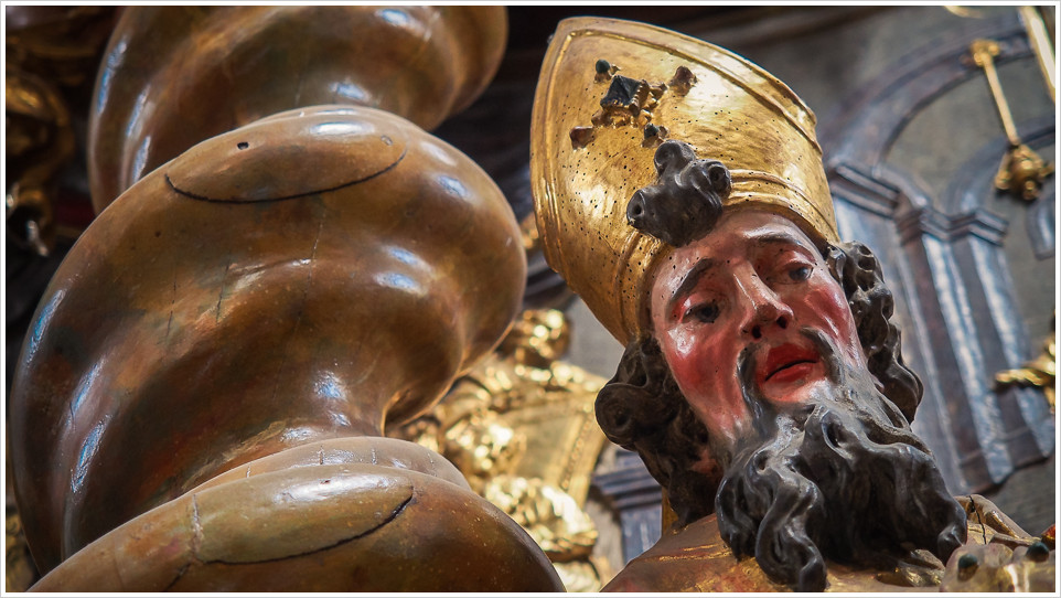 Bischofsfigur im Kloster