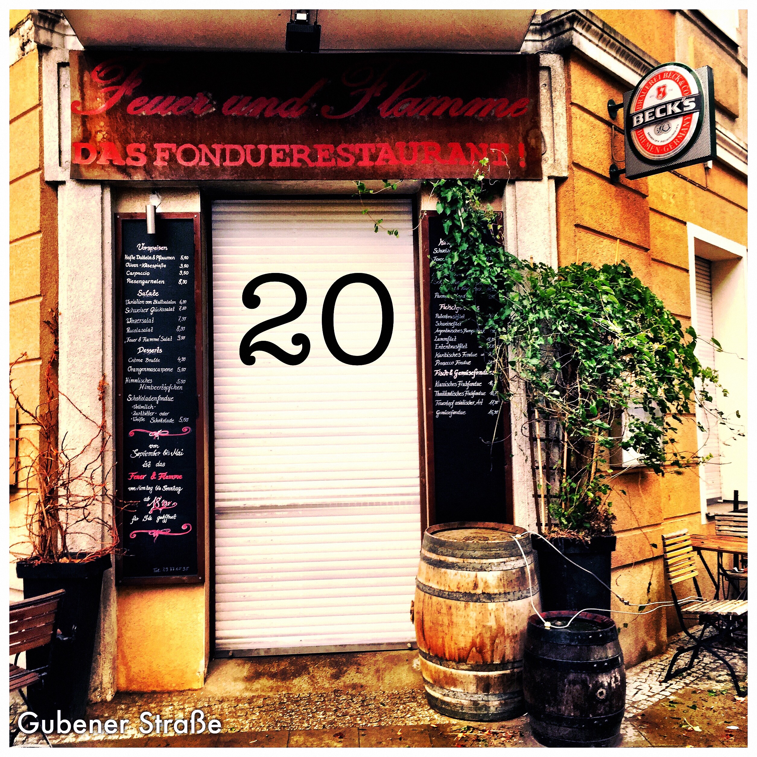 Wer einmal lecker Fondue essen möchte, vielleicht jetzt zu Weihnachten eine schöne Anregung, sollte sich bei „Feuer & Flamme“ einen Tisch reservieren. Ob deftig oder süß, es bleiben keine Wünsche offen. Früher war das Ecklokal eine Kneipe namens „Manuela“, danach mal so etwas wie ein Schnitzelparadies, war aber alles nicht von Dauer. Jetzt scheint die richtige Marktlücke gefunden. Immer gut besucht und schon über fünf Jahre am Start.