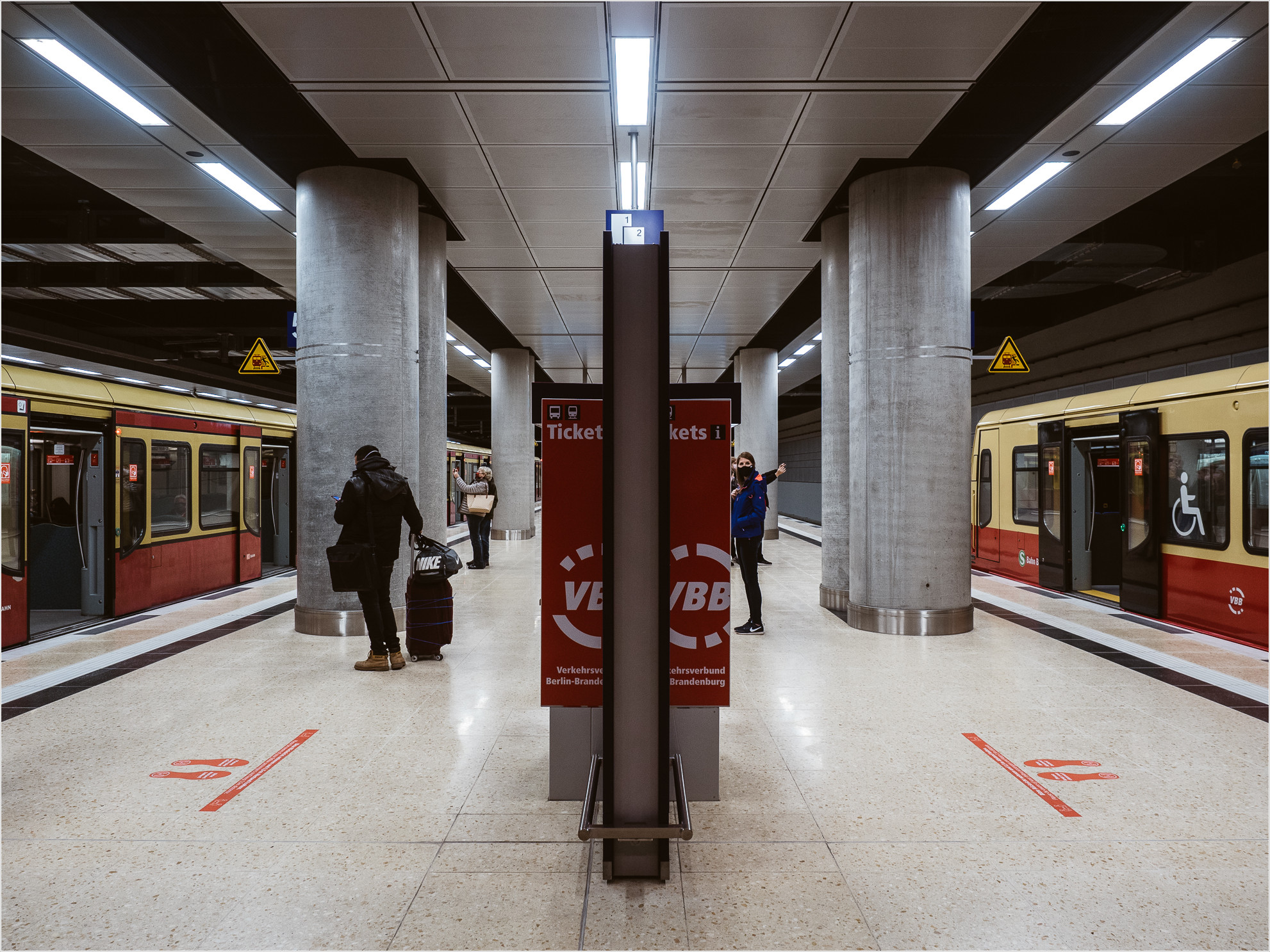 Am Sonntag habe ich mir den neuen Hauptstadtflughafen BB Willy Brandt mal angesehen. Zünftig will ich mit dem neuen FEX, dem Flughafenexpress, anreisen, doch Personen am Gleis können das erfolgreich verhindern. Der FEX fährt zurück nach Schönefeld „alt“ und von dort geht es dann mit der S-Bahn weiter. Die S45 ist die neuste Baureihe der Berliner S-Bahn und entspricht dem aktuellen Standard anderer Städte, echt schick.